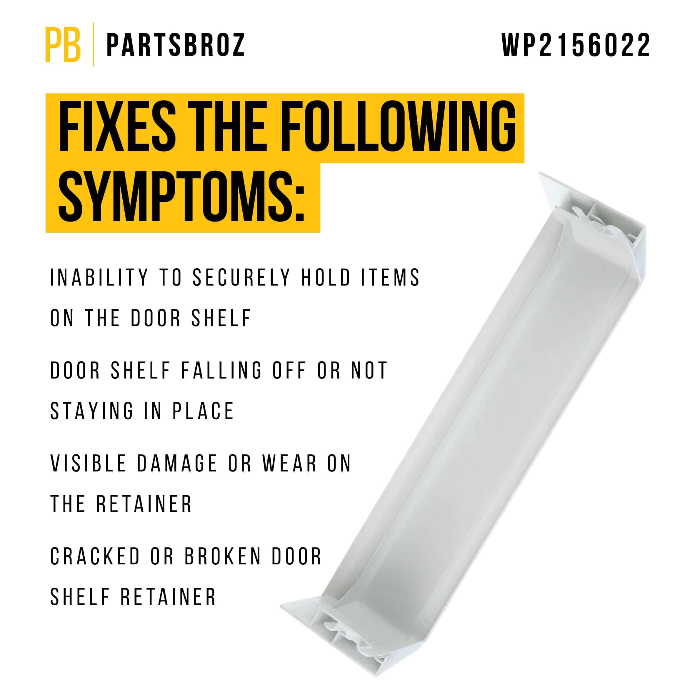 Repisa de puerta PartsBroz WP2156022 – Compatible con refrigeradores Whirlpool Kenmore Maytag Amana – Reemplaza AP6005869 PS11738931 2156022 2156022K 2193436 441744 Pieza de repuesto ultra duradera. Este repisa de puerta WP2156022 es un equivalente de alta calidad para las piezas WP2156022, AP6005869, PS11738931, 2156022, 2156022K, 2193436 y 441744. Es una pieza altamente duradera y compatible con refrigeradores Whirlpool, Kenmore, Maytag y Amana. Reemplazar una pieza en su electrodoméstico puede ser una tarea sencilla de bricolaje. Este producto puede ayudarlo a solucionar los siguientes síntomas: grietas o roturas en la repisa, la repisa no se ajusta de forma segura en su ranura designada, los artículos caen o se vuelcan debido a la inestabilidad, o dificultad para deslizar o quitar la repisa para limpiar. Consulte el manual de su electrodoméstico o busque en línea instrucciones paso a paso adaptadas a su modelo específico. Priorice su seguridad durante todo el proceso. Nuestros repuestos están fabricados con materiales de alta calidad para garantizar durabilidad y un rendimiento prolongado, proporcionándole soluciones confiables para sus electrodomésticos. Diseñados para adaptarse a una variedad de modelos populares de electrodomésticos del hogar, nuestras piezas de repuesto ofrecen una solución conveniente y versátil para mantener sus electrodomésticos en óptimas condiciones de funcionamiento.