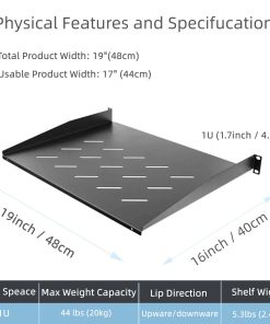 Repisa Universal TECHTOO Vented Cantilever – 16″ Profundo para Equipo de 19″ Bandeja de Gabinete Rack de Servidor – Acero laminado en frío de 1.2mm de alta resistencia Capacidad de 60 libras (1U-16 pulgadas)
