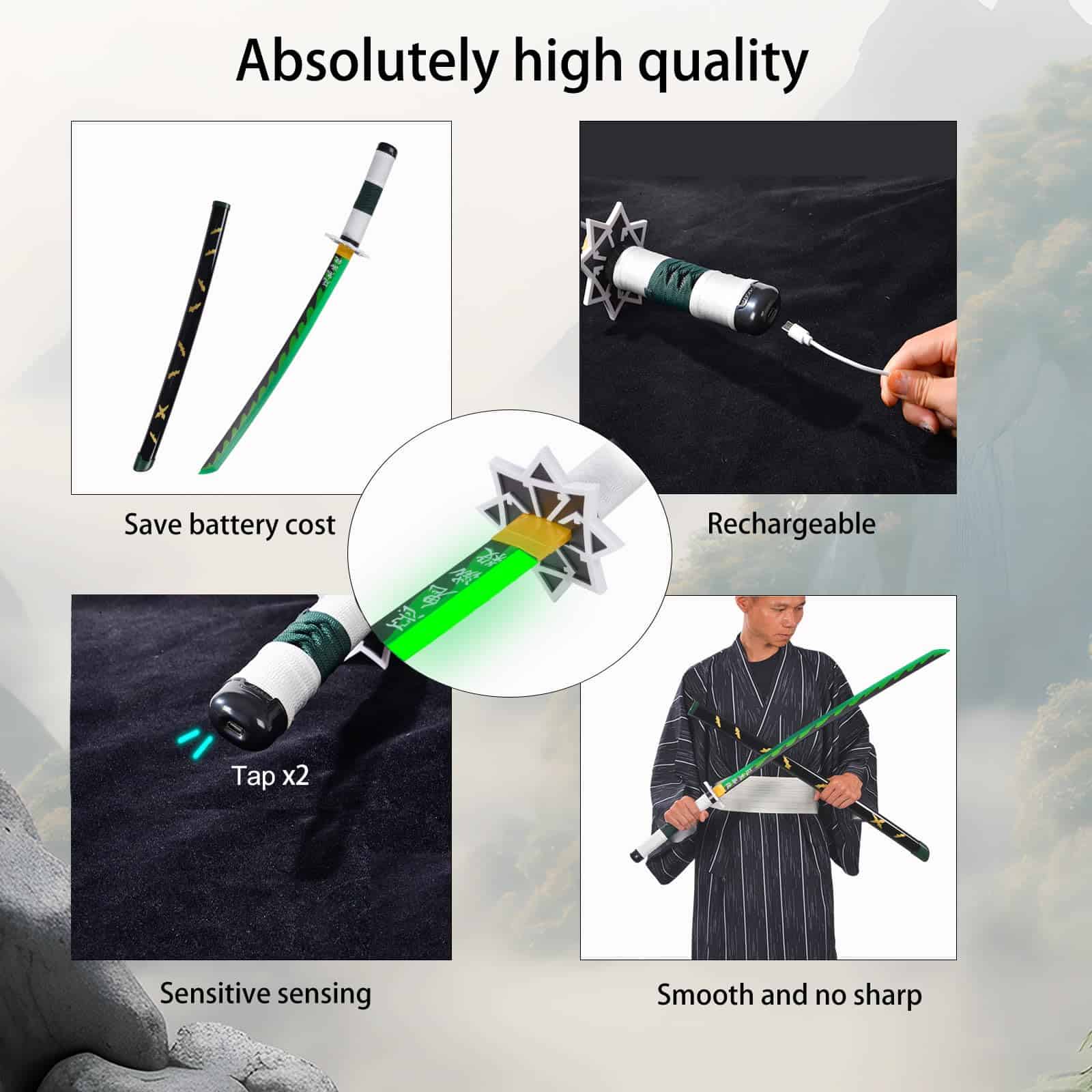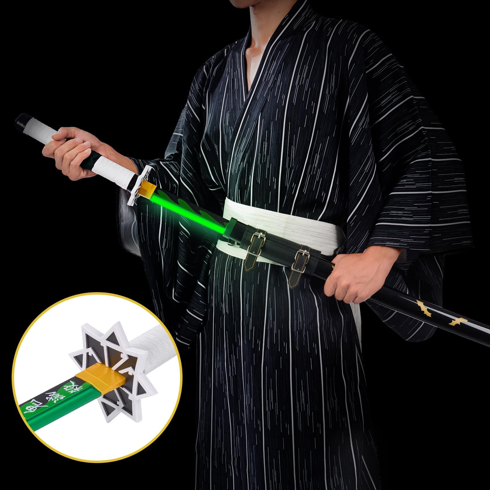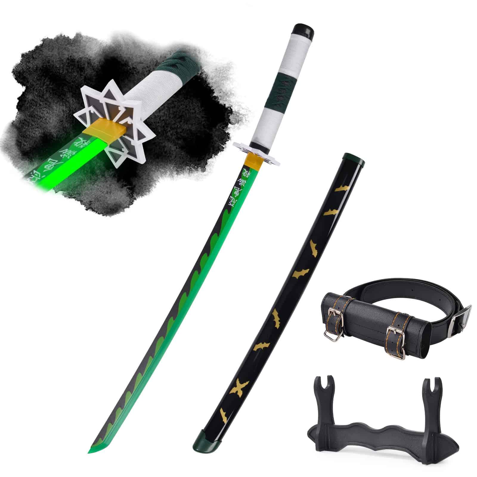 1. Réplica Auténtica de Anime: Esta réplica de katana sanemi de anime en escala 1:1 mide 30 pulgadas y está hecha de plástico duradero, recreando fielmente la espada de una popular serie de anime, perfecta para cosplay, exhibición o colección.