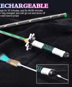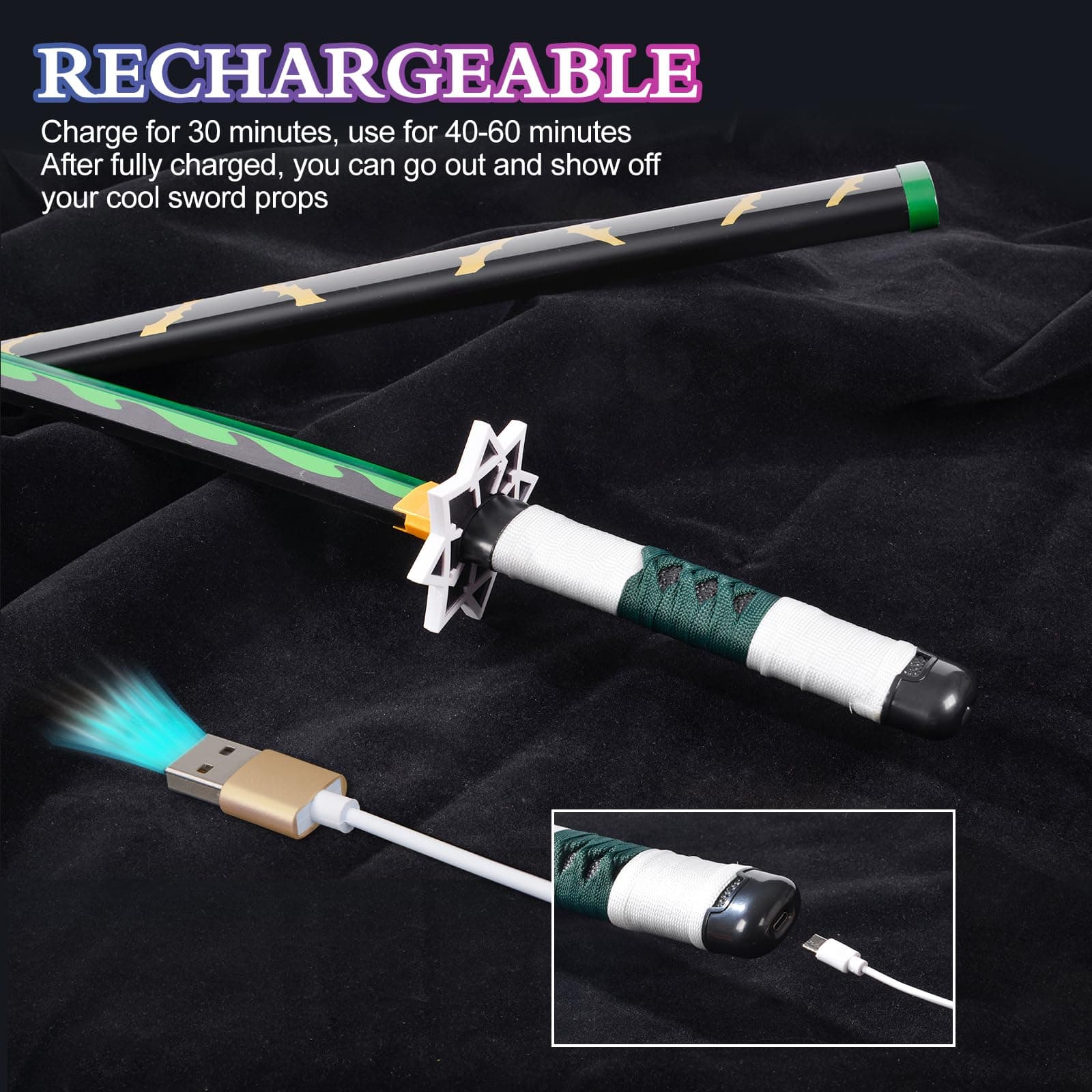 3. Batería Recargable: Equipada con una batería recargable de 180 mAh, la espada se carga completamente en solo 40 minutos, proporcionando hasta 60 minutos de luz continua, ideal para tus necesidades de cosplay.