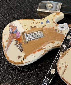 Una pieza imprescindible para los fanáticos del aclamado guitarrista original de Fabulous Thunderbirds de 1979 a 1989 y hermano de Stevie Ray. Este hacha hecha a mano incluye detalles como una verdadera placa mini de metal «JLV», detalle vintage desgastado, estrellas, niña, gráfico en la parte trasera!