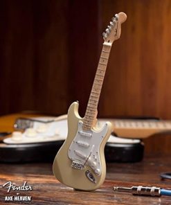 Esta réplica en miniatura de modelos de guitarras está oficialmente licenciada para conmemorar instrumentos icónicos de Fender(TM). Cada réplica ornamental de guitarra a escala 1:4 está elaborada a mano de forma individual con madera maciza y clavijas de afinación metálicas. Cada modelo de guitarra mide aproximadamente 10 pulgadas de longitud y viene completa con un soporte ajustable de alta calidad en miniatura y una caja de regalo para guitarra. Las réplicas en miniatura de Axe Heaven lucen increíbles pero no son tocables.