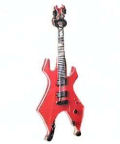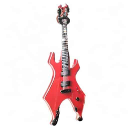 Réplica en miniatura de guitarra Warlock roja con la firma