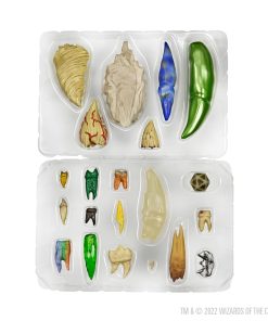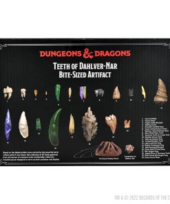 Dungeons & Dragons: Dientes de Dahlver-Nar Artefacto en Miniatura: Basado en el legendario artefacto que una vez fue portado por el poderoso clérigo cuyo nombre ahora lleva, esta colección de 20 dientes recolectados de todo tipo de criaturas descansa cómodamente dentro de una bolsa de cuero diseñada para servir como contenedor y exhibición. Set Contiene: 1x Molar de Gato Marfil, 1x Molar Humano, 1x Bicúspide de Goblin Dorado, 1x Canino de Medioingravido, 1x Colmillo de Lizardfolk de Esmeralda, 1x Dulce Canino Humano, 1x Molar de Asno de Colores del Arcoíris, 1x Diente de Lanzallama Plateado, 1x Diente Vómico de una Rana Grande, 1x Molar Humano de Obsidiana, 1x Colmillo de Vampiro Amarilleado, 1x Diente de Retorcido de Beholder, 1x Colmillo Oni de Lapislázuli, 1x Colmillo Traslúcido Roto, 1x Bicúspide de Humanoide de Jade, 1x Colmillo de diablo pozo de acero verde, 1x Colmillo de Dragón Azul, 1x Astilla Dentada de Diente de Tarrasque, 1x Colmillo de Dragón Rojo con Venas Rubí, 1x Molar Humano Polvoriento, 1x Bolsa de cuero con cordón, 1x Reglas del juego y un d20 para facilitar la inclusión de los dientes de Dahlver-Nar en tu juego de D&D.