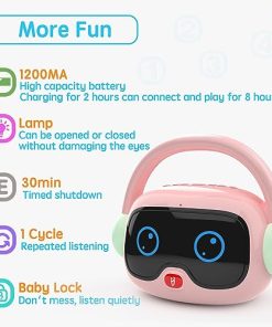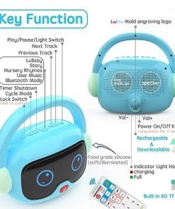 El reproductor de audio para niños LeiHui es un juguete educativo temprano que ofrece una experiencia de escucha sin pantalla. Con forma de dibujos animados y luces de oídos y ojos de silicona, es conveniente de llevar a todas partes. Cuenta con música pre-almacenada de 49 canciones de cuna clásicas, 9 historias interesantes clásicas y 12 melodías relajantes y sonidos de la naturaleza. Además, tiene función Bluetooth para conectarse de forma inalámbrica a teléfonos móviles y reproducir música. Es recargable a través de cable micro USB (incluido) y tiene una duración de batería de hasta 8 horas. El contenido pre-cargado está en inglés, pero permite descargar más de 2000 nuevas canciones o historias en cualquier idioma. Se puede conectar a una PC con el cable de datos para descargar más pistas. ¡Asegúrate de cargarlo antes de usarlo!