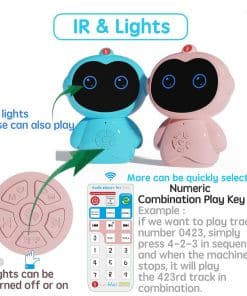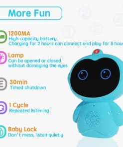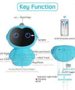 Reproductor de audio pre cargado para niños con 76 contenidos ricos. 16 historias, 48 músicas, 12 canciones de cuna, 16 sonidos relajantes y compatible con contenido personalizado. Ligero y compacto, fácil de usar y seguro. Funciones potentes como bluetooth, batería recargable, función de apagado automático, ajuste de volumen y funciones de memoria. Regalo perfecto para el aprendizaje y entretenimiento sin pantalla. Viene con garantía de 1 año, respuesta rápida las 24 horas. Cualquier pregunta, comuníquese al Centro de Atención al Cliente.