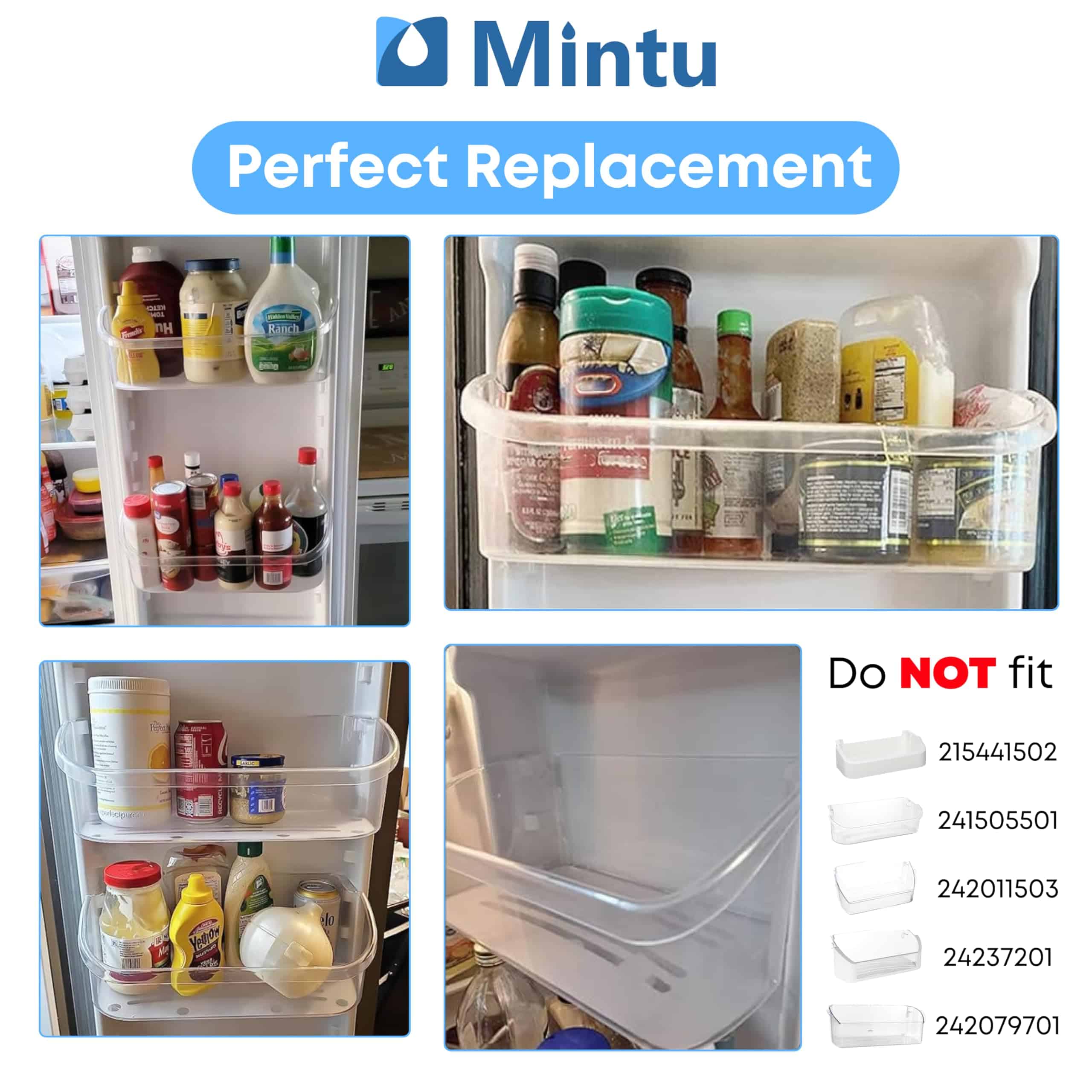 Repuesto de Contenedor de Puerta Mintu Para Frigidaire FGUS2632LP0 LFSS2612TF2 FPHS2699PF2 LFSS2612TP0 FGHS2655PF6B FRS6LF7FBA FGHS2631PF0 LGHS2644KM1 FGUS2632LE2 FGSS2635TF1 FGSS2635TF0 LFSS2612TD0 Refrigerador. Este repuesto de contenedor de puerta de refrigerador 240356402 es compatible con una amplia variedad de modelos de Frigidaire y LG, reemplazando los números de parte 240356407, 240356408, 240356410, 240356411, entre otros. Hecho con materiales de alta calidad, seguros y ecológicos para garantizar durabilidad y seguridad. Fácil instalación sin necesidad de herramientas, ahorre tiempo y dinero. Soluciona problemas como grietas en el contenedor, falta de espacio de almacenamiento, problemas de higiene y desgaste incrementado. Asegúrese de verificar la compatibilidad con su modelo antes de ordenar.