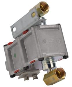 2. Clasificación eléctrica: 3V CA @ 3.3 – 3.6 Amperios | Tamaño de entrada: 3/8″ Loxit | Tipo de montaje: Soportes | Tamaño de salida 1: 3/8″ Loxit | Tamaño de salida 2: Orificio | Terminales: 1/4″ M (2), 3/16″ M (2) | Se ajusta a hornos de gas de modelos específicos.