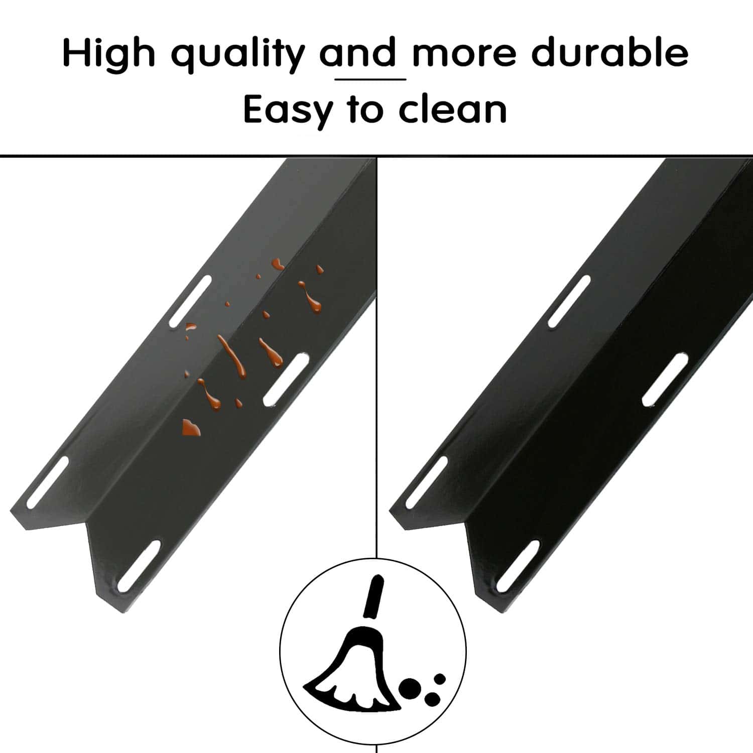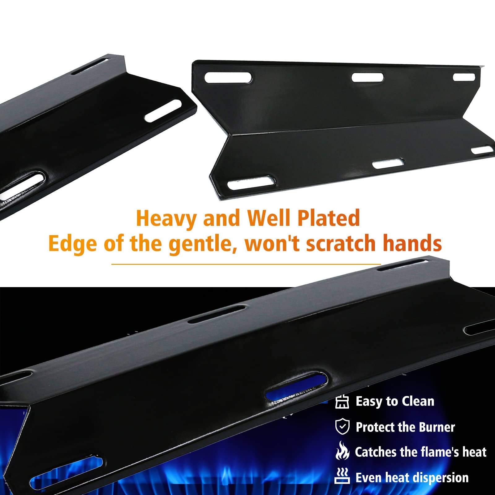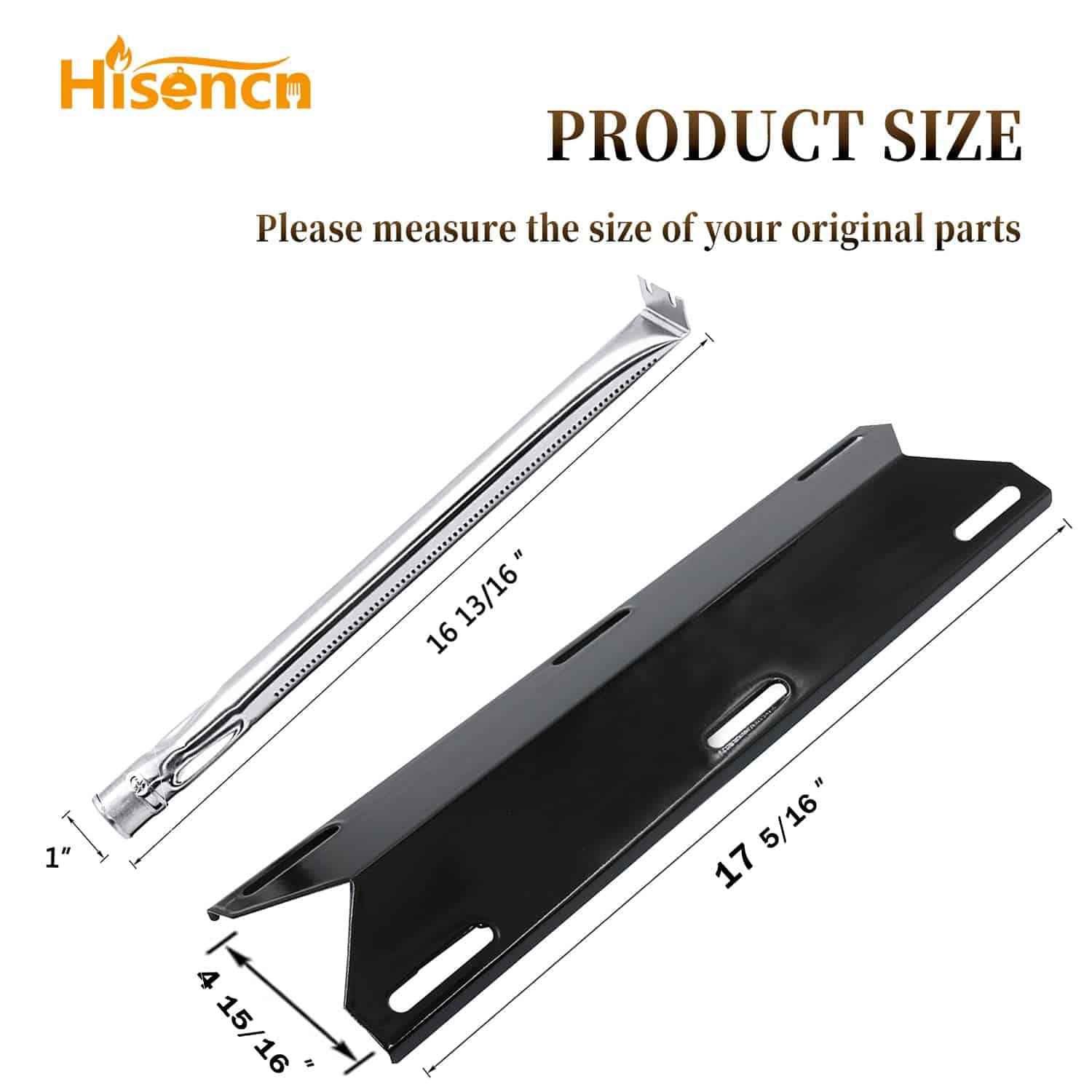 1. Compatible con piezas de repuesto para parrilla Charmglow – Compatible con los modelos Charmglow: 720-0304; También compatible con modelos Nexgrill: 720-0304. 2. Compatible con piezas de repuesto para parrilla Permasteel – Compatible con los modelos Permasteel: PG-50400-S, PG-50401-S, PG-50404-SOL, PG-50410-S, PG-50410-SOLB, PG-50506-SRLA, PG-50506-SRLSC. 3. Dimensiones – Quemador de acero inoxidable: 16 13/16″ x 1″. Números de parte originales: CTB1, NGCHP3. Dimensiones del protector térmico de acero porcelanizado: 17 5/16″ x 4 15/16″, Kit de reparación incluye 4 quemadores, 4 placas de calor. Por favor, mida el tamaño de sus piezas originales y compare con los repuestos antes de realizar el pedido. 4. Distribución uniforme del calor – Evita que los alimentos sean expuestos directamente a la llama, ofreciendo una buena protección para su quemador; Ayuda a atrapar goteos y aceite, añadiendo un sabor ahumado a sus alimentos, calentando uniformemente su comida para obtener un sabor delicioso. 5. Servicio postventa Antes de comprar, por favor compare con el tamaño y modelo de la pieza original. Si hay algún problema con el producto que recibió, póngase en contacto con nosotros y le responderemos dentro de las 24 horas.