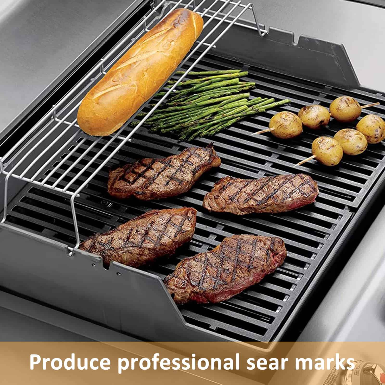 Ahora puedes mejorar aún más tu experiencia de parrilla. Esta parrilla de reemplazo 463436215 de hierro fundido esmaltado aporta calor de manera uniforme, creando marcas de cocción profesionales mientras sella la humedad y el sabor de tus alimentos. Esto hace que la comida se vea y sepa aún mejor. Tus invitados quedarán impresionados desde el primer vistazo, y hasta el último bocado.