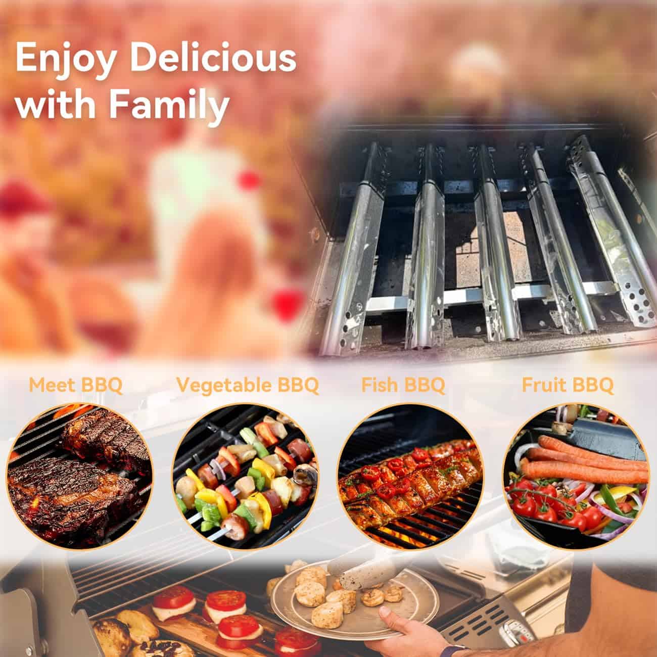 2. EL PAQUETE INCLUYE – El kit de reparación incluye 2 quemadores de parrilla, 2 placas de calor, 1 tubo de cruce ajustable, 2 encendedores. Nota: no apto para los modelos Charbroil Performance (series diferentes) como el número original 463458021 463365021 463351521 (no es compatible), por favor, confirme el tamaño antes de comprar.
