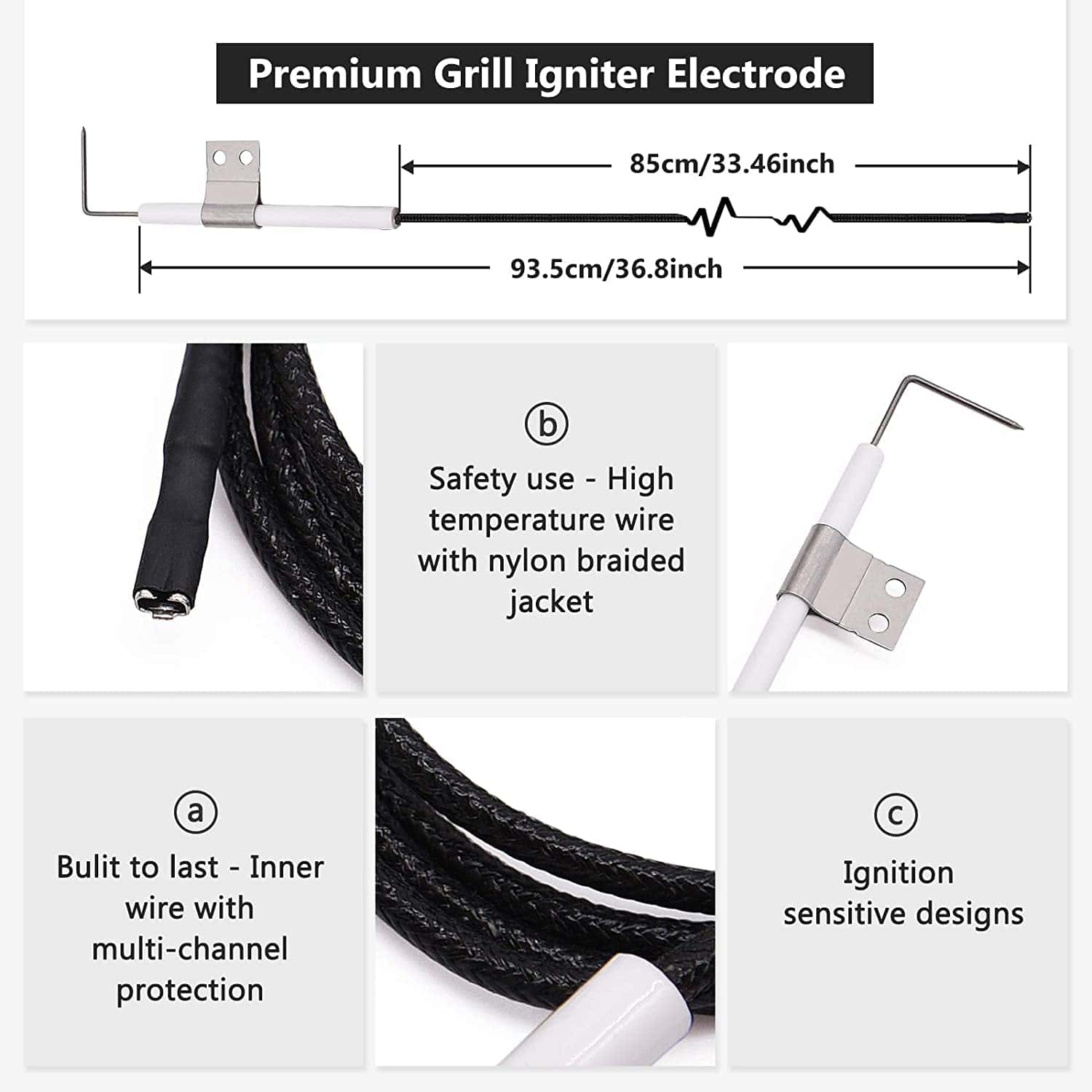 3. Tubo quemador: 14 7/8″ x 1″, Material: Acero inoxidable. Placa de calor: 14 9/16″ x 4 3/16″, Material: Acero porcelanizado. Cable de Ignitor: aproximadamente 33.5» L.