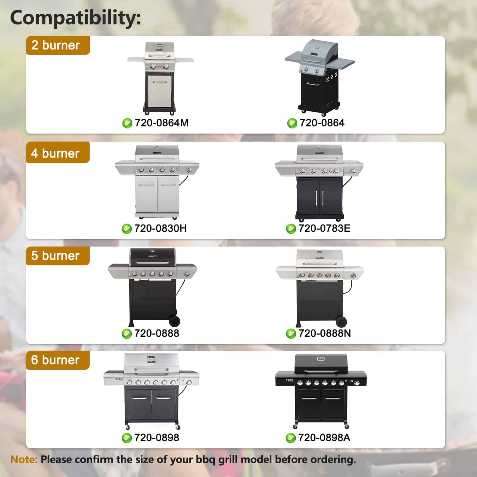 2. Repuestos de parrilla para Nexgrill 720-0898, 720-0898A, 720-0888, 720-0888A, 720-0888N, 720-0830H, 720-0830A, 720-0783E, 720-0864M, 720-0830D, 720-0864, 720-0864R, 720-0882S, 720-0894F, 720-0896CA, 720-0925S, 720-0958A, 730-0898 Modelos de Parrilla.