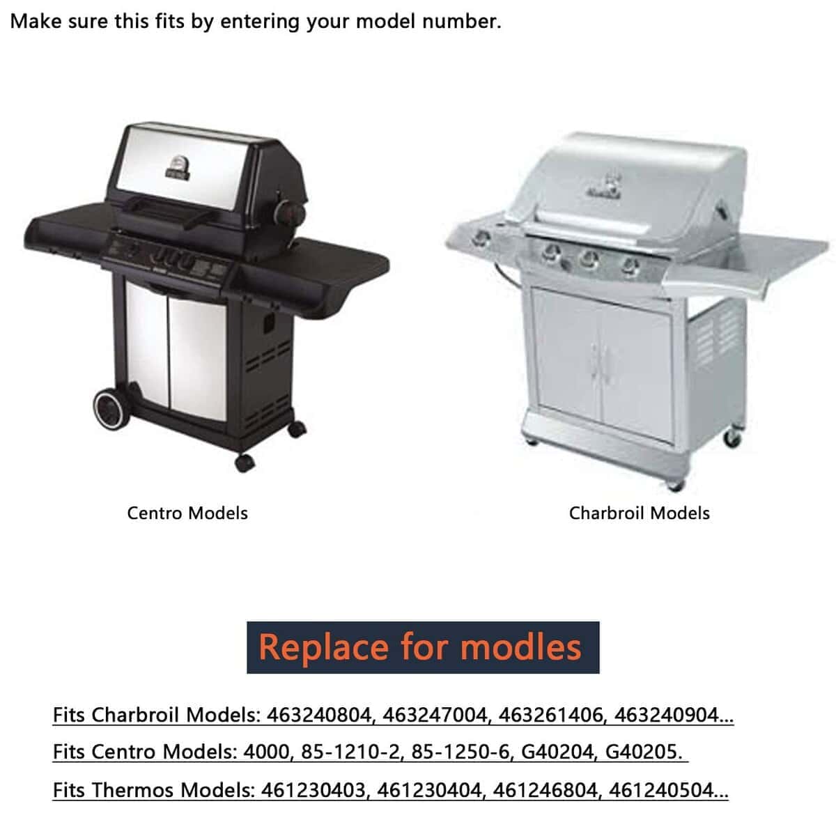 1. Compatible con modelos Charbroil: 463240804, 463247004, 463261406, 463240904, 463241704, 463241804, 463251505, 463251605, 463252005, 463252105, 463261306, 461252605, 463230203, 463230703, 463242304, 463243904, 463244004, 463244104, 463244105, 463244404.