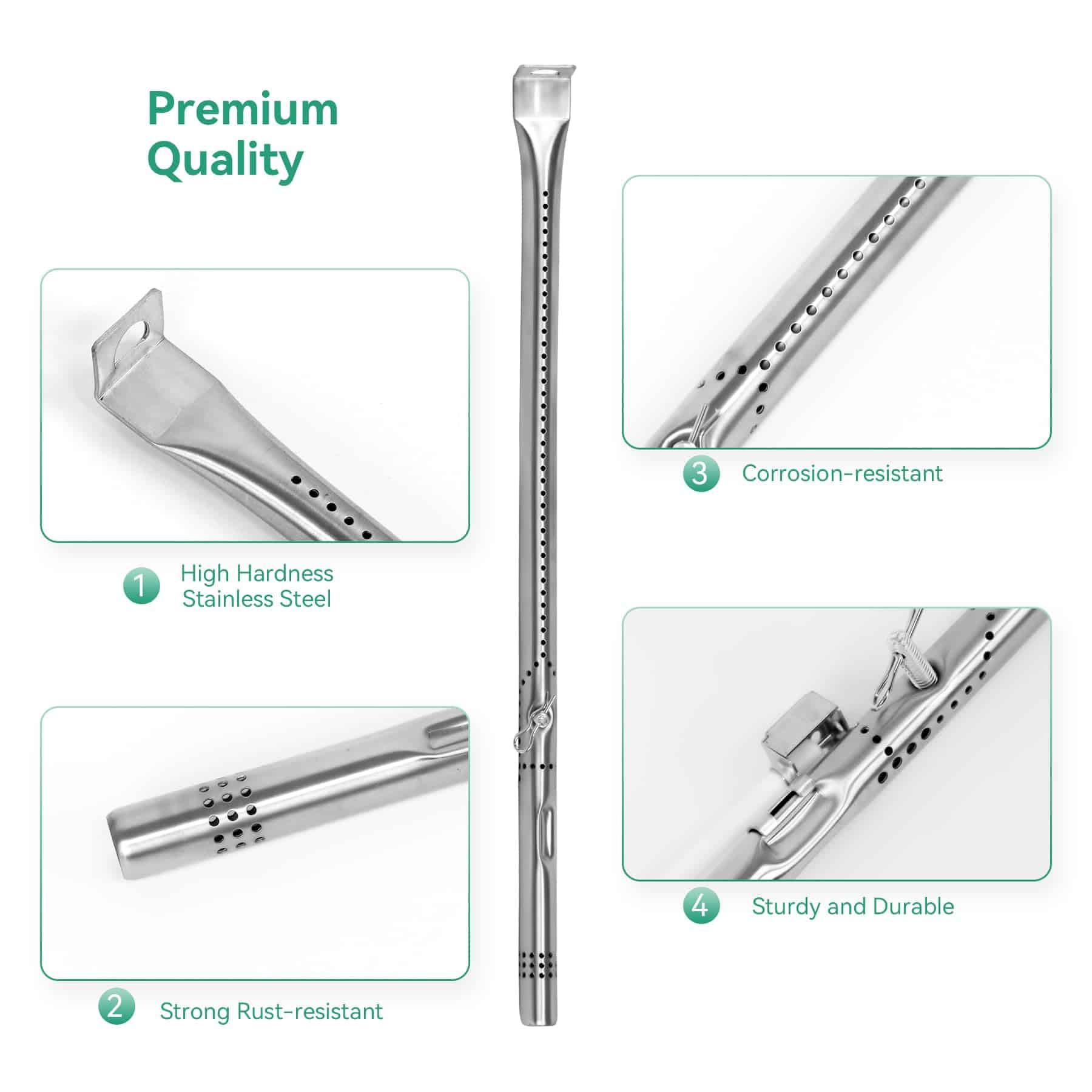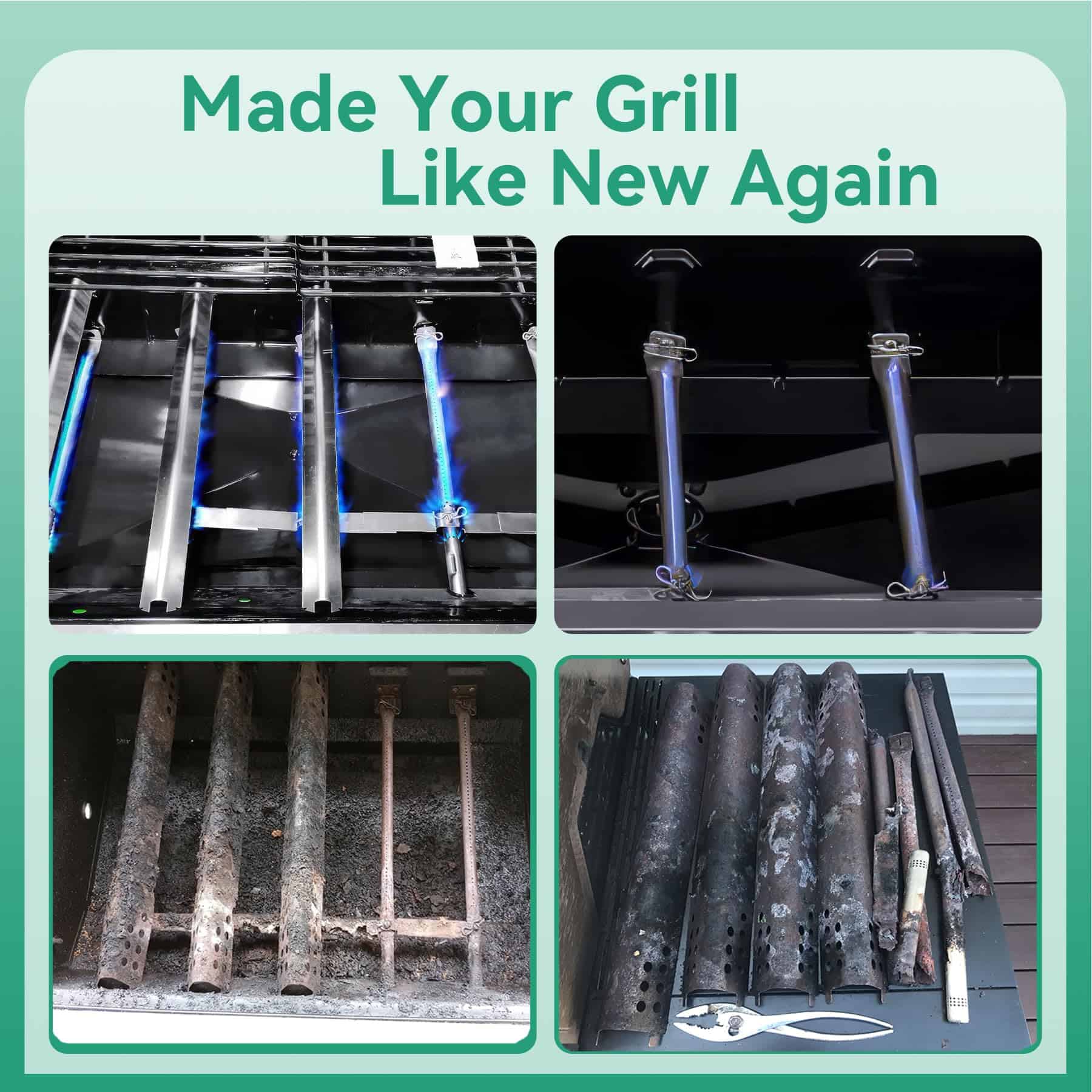 Repuestos para parrilla de 4 quemadores Charbroil Performance, repuestos para parrilla TRU-Infrared de 4 quemadores Charbroil, repuestos para parrilla de 5 quemadores Charbroil Performance, repuestos para parrilla de 6 quemadores Charbroil Performance. Incluye: 4 placas de calor, 4 tubos de quemador, 3 tubos de cruce ajustables, 2 encendedores, 4 tornillos. No compatible con algunos modelos específicos de parrillas Charbroil, por favor confirmar tamaño antes de comprar.