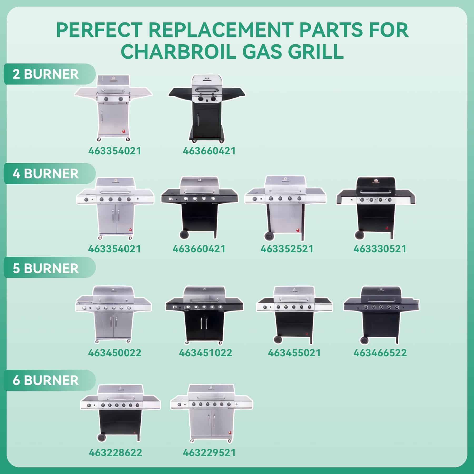 Repuestos para parrilla de 4 quemadores para Charbroil Performance, repuestos para parrilla de Charbroil 463366022, piezas de repuesto para parrilla de Charbroil 463366022, repuestos para parrilla Char-broil 463366022, piezas para parrilla Charbroil 463365021, repuestos para parrilla Charbroil 463366022