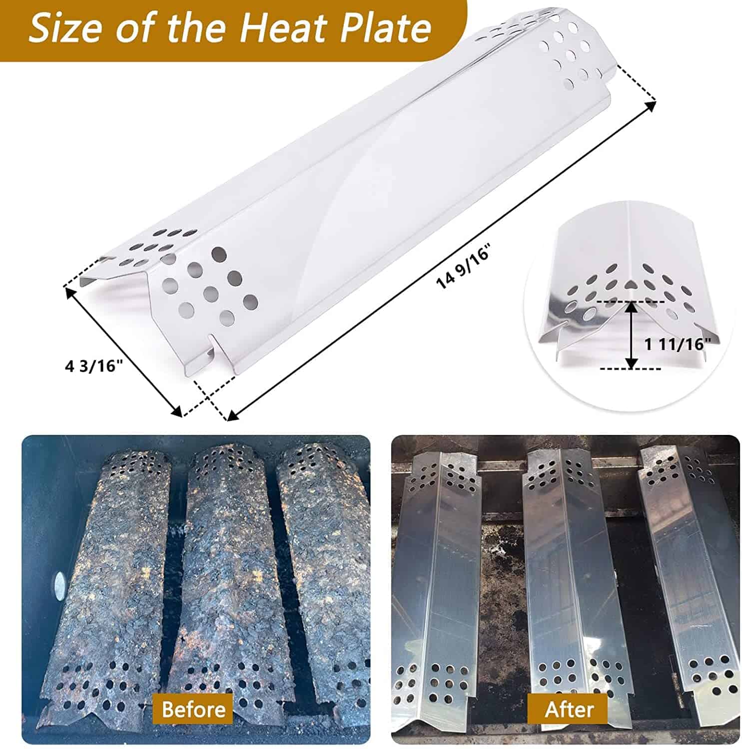 – El kit de repuestos para la parrilla Nexgrill 5 quemadores 720-0888, 720-0888A, 720-0888N incluye 5 Placas de Calor y 5 Tubos Quemadores. Tubo quemador: 14 7/8″ x 1″, Material: Acero inoxidable. Toldo de calor: 14 9/16″ x 4 3/16″, Material: Acero inoxidable.
