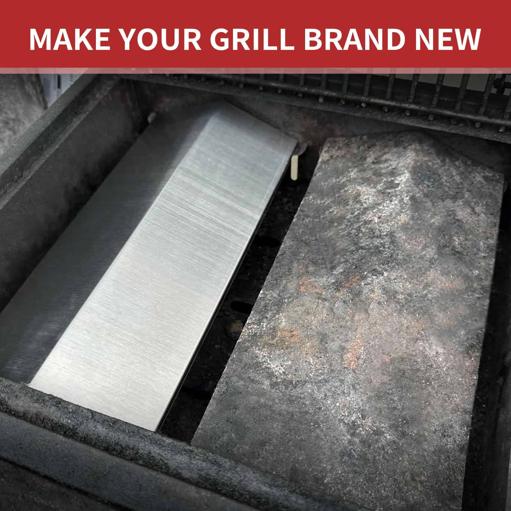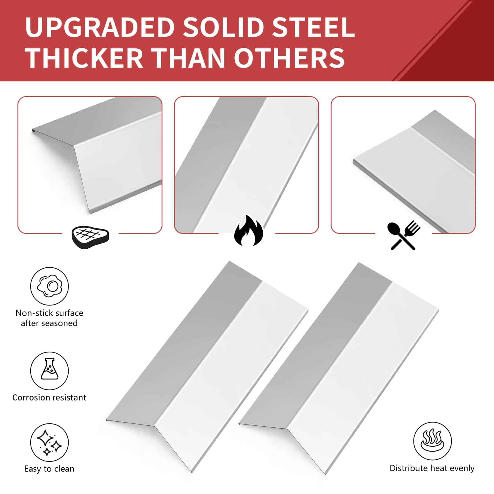 Repuestos para parrilla de calidad premium fabricados con acero inoxidable sólido más pesado y grueso, diseñados para adaptarse a diversos modelos como Cuinart CGG-306, Nexgrill 820-0033, 820-0007, 820-0015, 820-0007G y Megamaster 820-0033M, 820-0007B. Distribuye el calor de manera uniforme, previene que los alimentos se expongan directamente a la llama, atrapando goteos y aceites para darles un sabor ahumado. Ideales para lograr un asado profesional y disfrutar de barbacoas deliciosas con amigos y familiares.