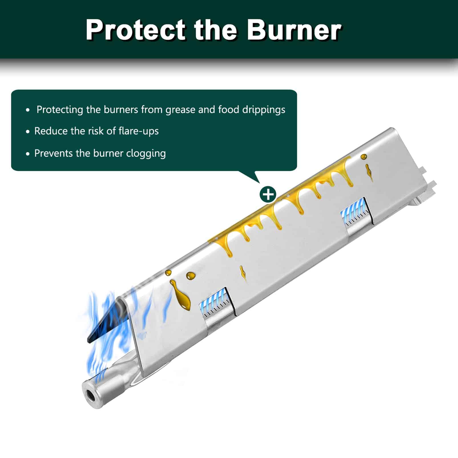 La piezas de repuesto para la parrilla Weber Spirit E310 están hechas de acero inoxidable mejorado, lo que hace que las partes de la parrilla de gas Weber Spirit II E-310 sean más duraderas, resistentes a la oxidación y corrosión, resistentes al agrietamiento, astillado, deformación, distribución uniforme del calor y duraderas, soportando el calor generado durante la parrilla. Ajuste para Weber Spirit 300 Series, Weber Spirit II 300 Series y más. Reemplazo para piezas de parrilla de gas Weber. Las piezas de la parrilla Weber Spirit E-330 proporcionan una buena retención de calor y calor uniforme, las cubiertas gas de weber Spirit protegerán el juego de tubo de quemador del aceite para evitar que la grasa obstruya los orificios del quemador, permitiendo que el producto del quemador weber lance una llama completa y uniforme. Las barras saborizantes Weber Spirit también devuelven las gotas de aceite recolectadas evaporando para aumentar el sabor ahumado de la comida.