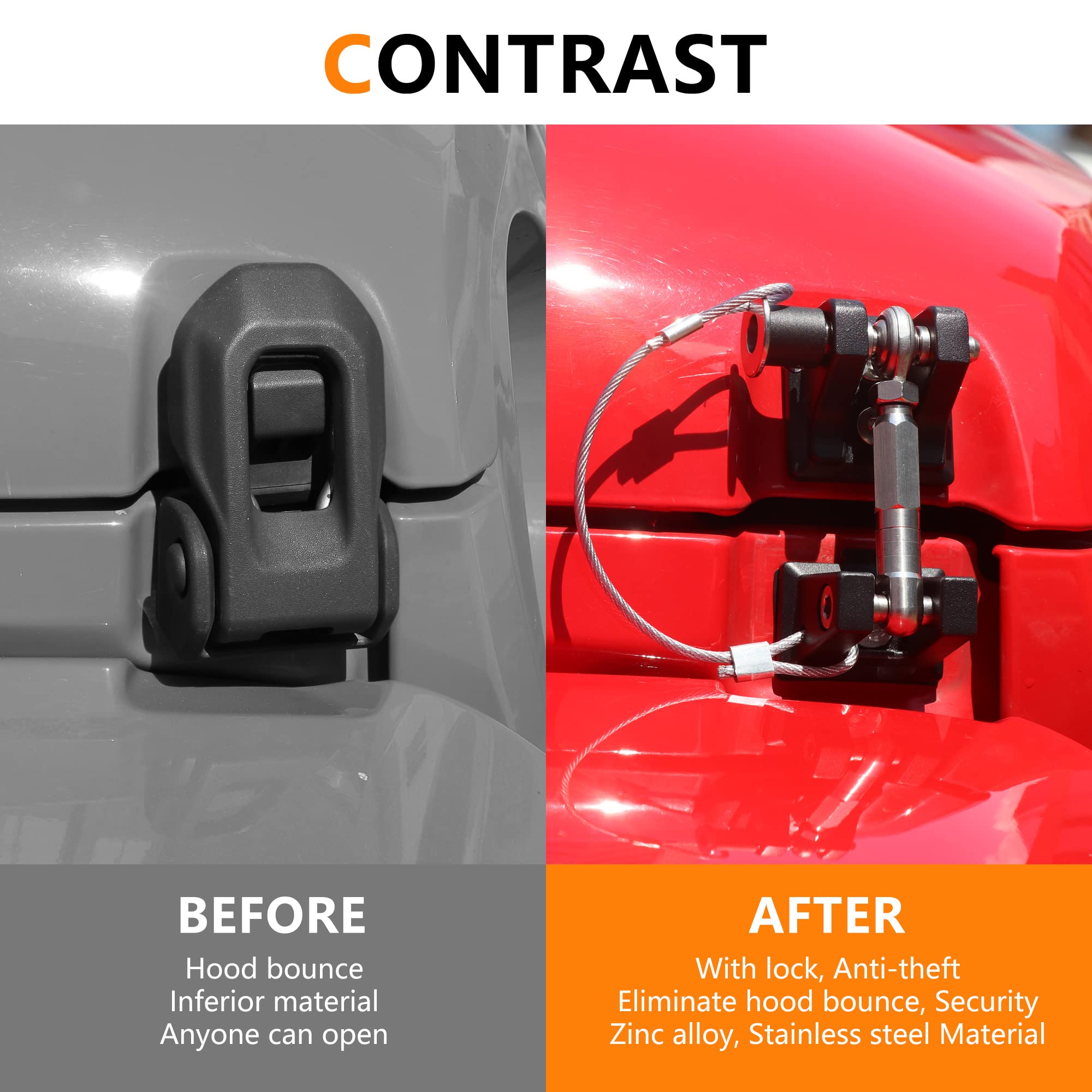 Hemos mejorado los cierres de capó originales para Jeep Wrangler JL JT para asegurarnos de que no se caigan nuevamente, más fuertes y duraderos.