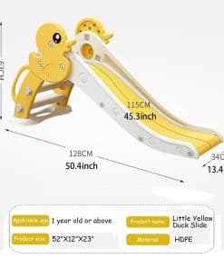 Resbaladilla Creativa Amarilla para Niños PHSSHOP – Una Resbaladilla Divertida para Niños de Interior para Edades de 1 a 3 años. Esta resbaladilla con forma de trompa de elefante cuenta con un diseño único, inspirado en la trompa alargada de un elefante. Los niños se deslizarán alegremente con risas, cautivados por su apariencia distintiva, convirtiéndola en un punto focal único en cualquier patio de recreo. La seguridad siempre es nuestra principal prioridad. Fabricada con materiales de alta calidad, esta resbaladilla garantiza una superficie suave y una estructura de soporte robusta, ofreciendo a los niños una experiencia de juego segura y estable que tranquiliza la mente de los padres. Es más que una resbaladilla; es una fuente de creatividad e imaginación. Los niños pueden transformar esta resbaladilla con forma de trompa de elefante en su propia aventura, permitiéndoles liberar su creatividad durante el juego y creando diversión sin límites. Ya sea en interiores en una sala de juegos o en exteriores en el jardín, esta resbaladilla con forma de trompa de elefante es una elección fantástica. Su diseño de tamaño moderado garantiza una integración perfecta en varios lugares, creando un espacio de juego alegre para los niños. Le proporcionamos instrucciones de montaje completas, lo que hace que la instalación de esta resbaladilla con forma de trompa de elefante sea muy sencilla. Además, es fácil de mantener, lo que le permite mantener la resbaladilla limpia y en excelente condición sin esfuerzo. Déles a sus hijos el regalo de diversión y emoción sin fin con la Resbaladilla para Niños de PHSSHOP. ¡Observe cómo su imaginación florece y sus habilidades crecen en este juego todo en uno. Disfrute de momentos de juego sin preocupaciones con nuestra «Resbaladilla para Niños Amarilla de Pato» – ¡Prometemos servicio al cliente las 24 horas del día y reposición incondicional de piezas para una tranquilidad suprema!