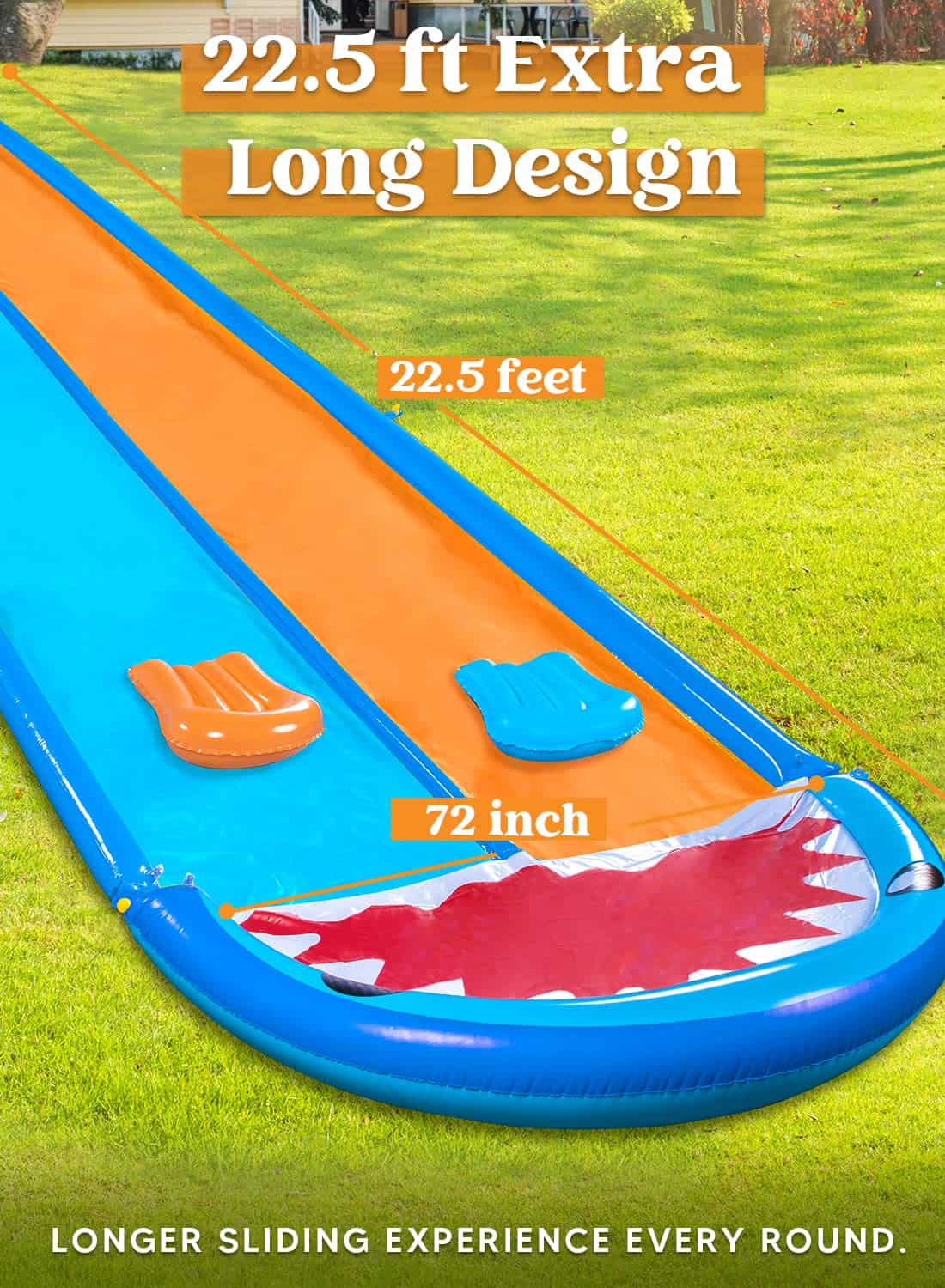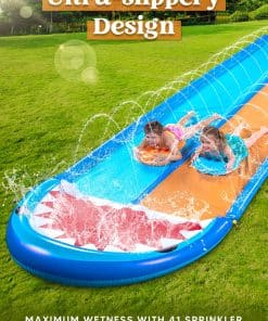 EXTRA LARGA. Esta resbaladilla de agua de 22.5ft Extra Larga brinda a tus hijos una experiencia extra de deslizamiento y es un gran regalo para tus hijos en cualquier época del año. Actividad al aire libre perfecta para mantener ocupados a los más pequeños en verano.