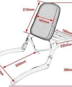 Respaldo de asiento trasero de motocicleta para Yamaha XV250 XV125 Virago. Este respaldo de asiento trasero de motocicleta está fabricado con materiales de alta calidad, lo que lo hace resistente y duradero. El cojín del respaldo cuenta con una cremallera que facilita su desmontaje, además de estar hecho de cuero PU transpirable y de alta calidad, con esponja integrada para proporcionar un buen soporte a la espalda de los pasajeros y mejorar la comodidad en viajes prolongados. Es compatible con Yamaha XV250 XV125 Virago. Su estructura sólida y metal resistente hacen que este respaldo para pasajeros sea duradero y resistente a roturas. Incluye 1 x Respaldo de Asiento Trasero Desmontable (Clip de cierre de la parrilla incluido). Las instrucciones de instalación no están incluidas.