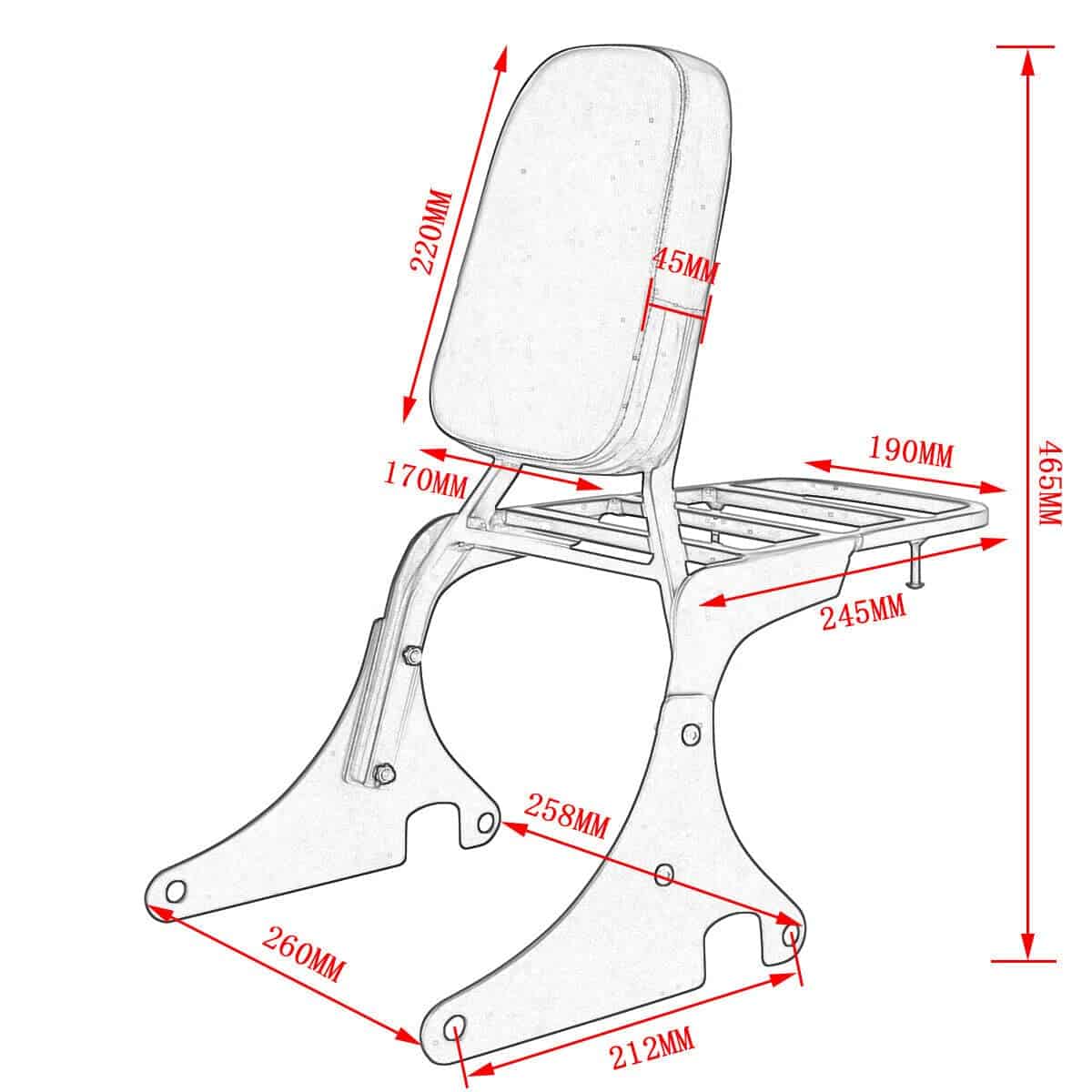 Respaldo de asiento trasero para motocicleta color negro