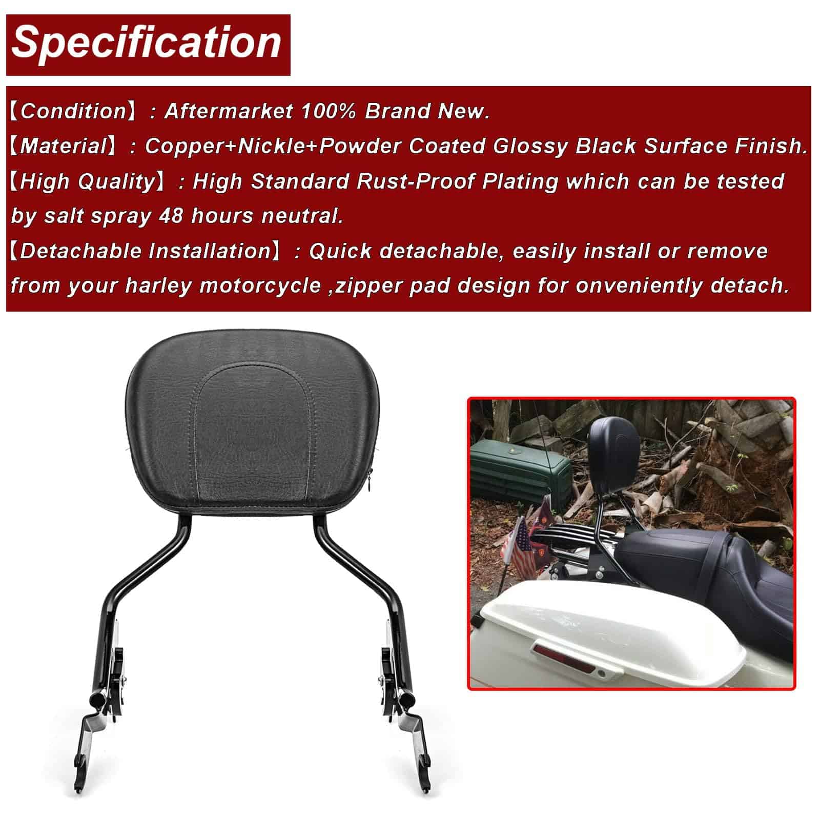 Compatibilidad 2014-2024 Harley Davidson Touring: Road King Electra Glide Street Glide y Road Glide. Condición: Postventa 100% nuevo y de alta calidad. Color: Negro. Material de calidad superior para una vida útil duradera y larga. Doble baño de cobre y níquel y acabado negro horneado para resistencia a la oxidación y tiempo de servicio prolongado. Almohadilla: Cuero sintético impermeable para mejorar la durabilidad y la experiencia de confort. Viene con instrucciones, fácil de instalar.