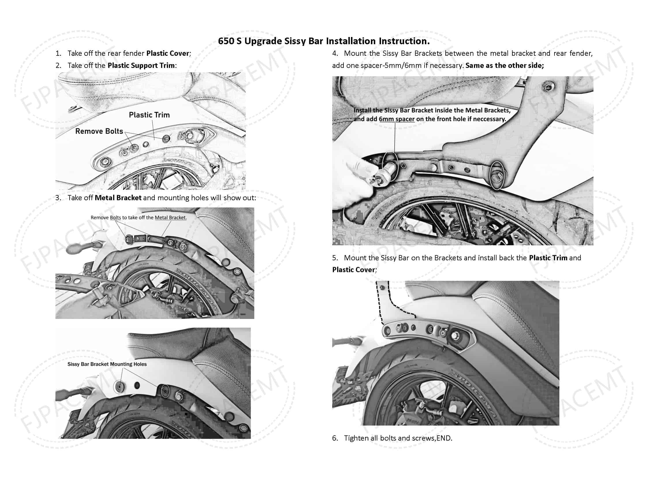 Especificaciones: Tipo: Respaldo de Pasajero para Motocicleta Altura: 24″ Material: Acero Resistente Condición: Nuevo Color: Negro Cojín: PVC / PU con remaches de hierro Respaldo: Acero sólido metal Soportes Laterales: Acero sólido cromado clásico, suave y cómodo. Características: Respaldo de pasajero personalizado, proporciona un lugar más cómodo para el pasajero. Respaldos desmontables personalizados disponibles para Vulcan 650 en 24 pulgadas en total. Tubos de acero sin costuras de 1.5 pulgadas de diámetro. Viene con un cojín de espuma viscoelástica para mayor comodidad del pasajero. Diseño elegante perfecto para decorar tu motocicleta. Instala este artículo en tu moto para garantizar un viaje suave y cómodo. Fácil instalación, te permite quitarlos fácilmente cuando no los necesitas. Compatibilidad: Fácil de instalar para Kawasaki Vulcan 650 S EN650 VN650 S650 650cc 2015-2023 (Nota: El respaldo viene desarmado). Paquete: 1 pieza sissy bar y kits de montaje (Como se muestra en la imagen). Nuestros servicios: Nuestro objetivo es la satisfacción del cliente al 100%. Por favor, contáctanos a través de la tienda si tienes alguna pregunta.