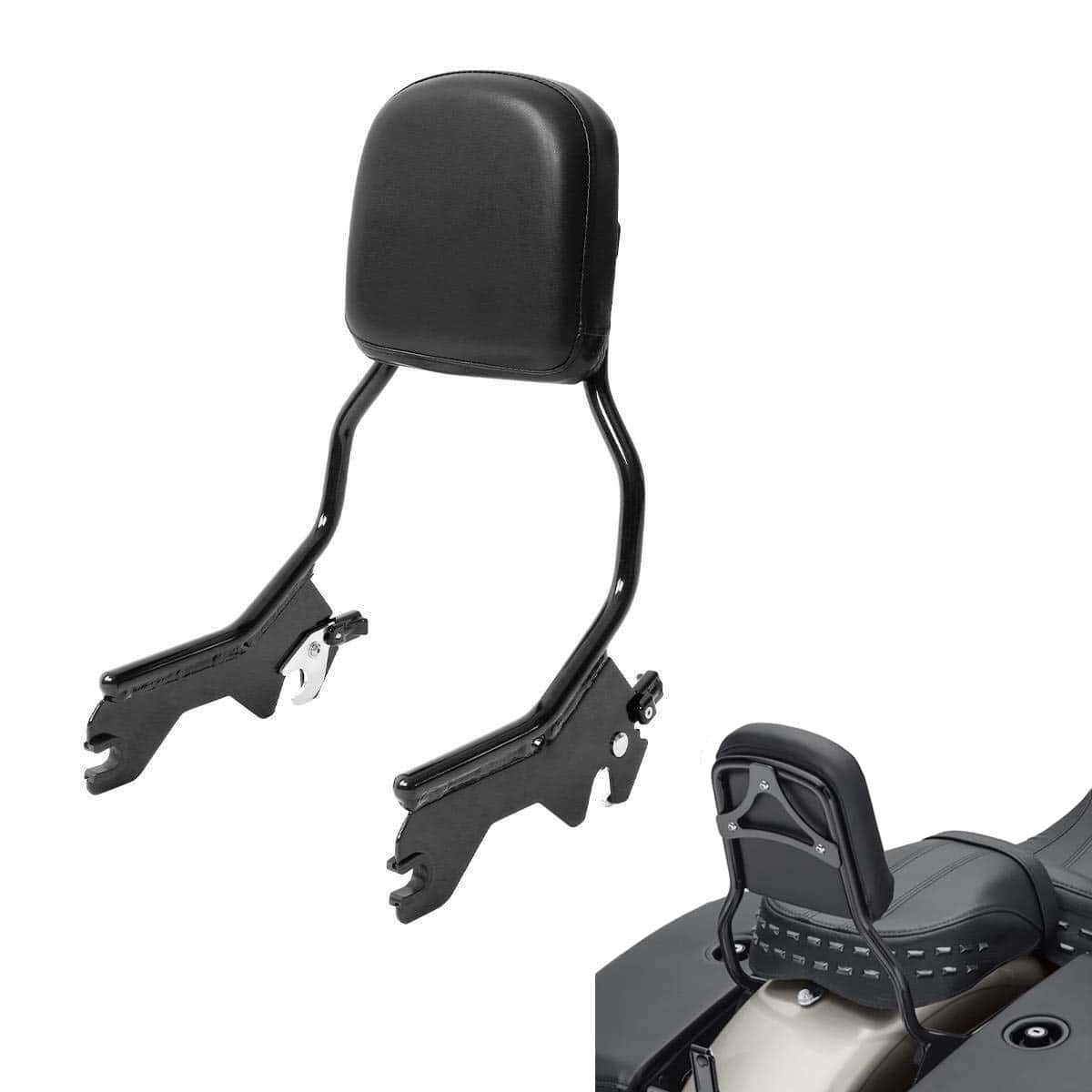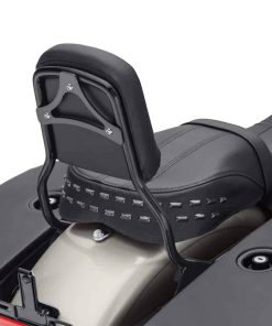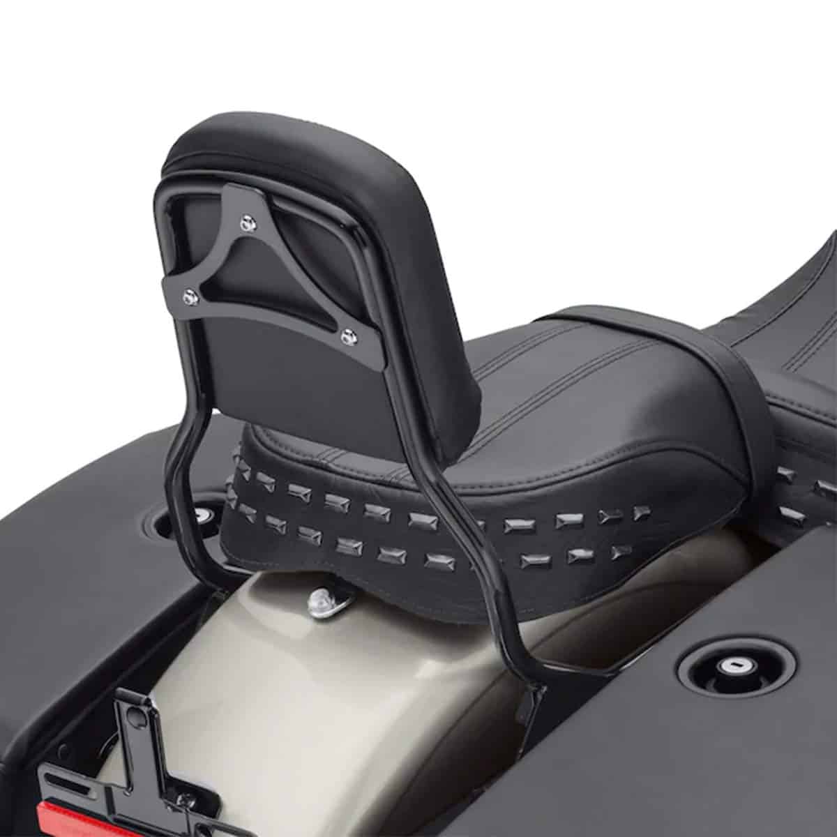 Respaldo estándar de altura para pasajero con cojín en color negro para Harley Davidson Softail FLDE, FLHC, FLHCS, FLSL, FXBB y modelos FXST 2018 2019 2020 2021 2022. Este respaldo y cojín para pasajero es el punto de partida para construir una máquina de turismo completa. El respaldo agrega comodidad y soporte a largo plazo y brinda una sensación de confianza y control para el pasajero. Los respaldos de una sola pieza cuentan con un exclusivo sistema de pestillo que permite instalar o quitar el respaldo en segundos para agregar versatilidad a tu paseo. El respaldo simplemente se desliza en posición en los puntos de anclaje y los pestillos se ajustan en posición para un bloqueo positivo. Compatible con modelos Harley Davidson Softail FLDE, FLHC, FLHCS, FLSL, Street Bob FXBB y Deluxe FLDE de los años 2018, 2019, 2020. La instalación requiere la compra por separado del Kit de Hardware de Acoplamiento específico para el modelo. El paquete incluye: 1 x Respaldo con cojín.