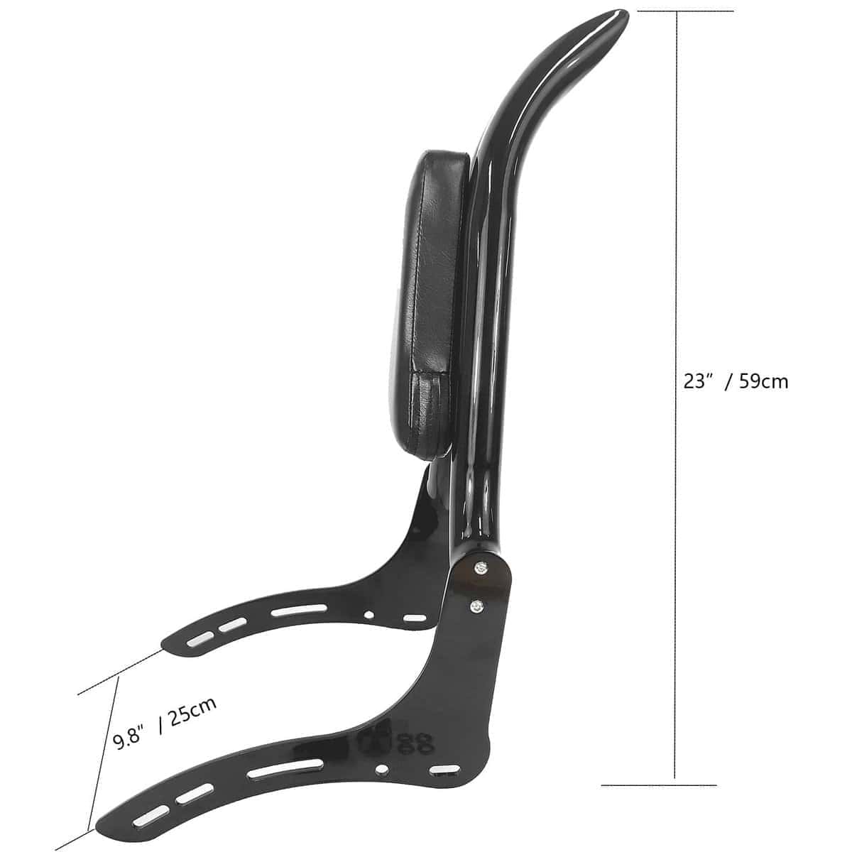 1 x Respaldo trasero sissy bar para pasajero, 4 x Tornillos, 1 x Almohadilla trasera negra.