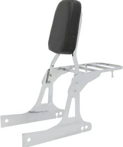 Respaldo sissy bar para motocicleta cromado de alta calidad compatible con varios modelos de Harley-Davidson Dyna. Este respaldo trasero está fabricado con materiales resistentes y duraderos que garantizan una gran comodidad y soporte para el pasajero. Su diseño incluye un cojín suave con cremallera de cuero PU transpirable y esponja incorporada que proporciona una comodidad excepcional durante viajes largos. La estructura sólida y el metal resistente hacen que este respaldo sissy bar sea duradero y resistente, ideal para un rendimiento de larga duración. El paquete incluye un respaldo trasero desmontable con clip de cierre para equipaje, pero no incluye instrucciones de instalación.