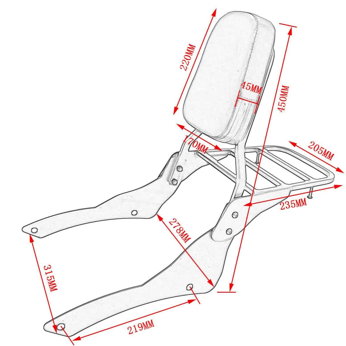Respaldo sissy bar de alta calidad con almohadilla cómoda y parrilla de equipaje perfectamente compatible con Yamaha VStar 650 400 XVS650 400 DS650 Classic DS400 V star 1998-2018 drag star.