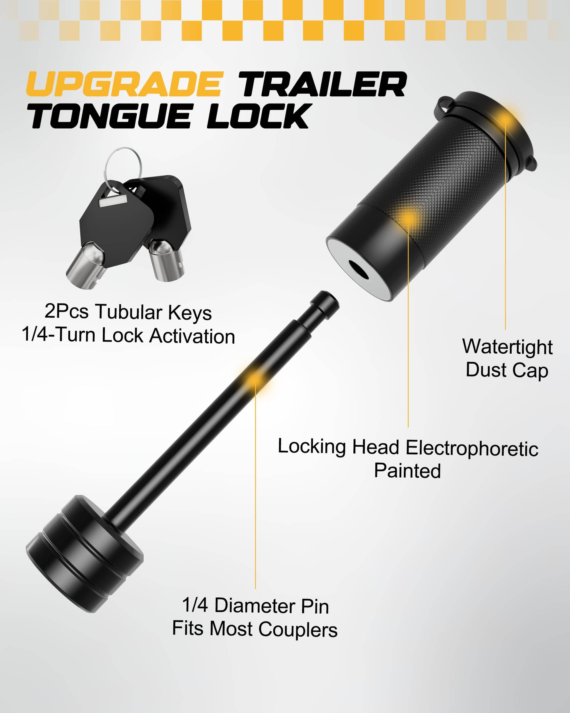 RETRUE Trailer Tongue Coupler Lock, Dia 1/4 Inch, 3-1/2