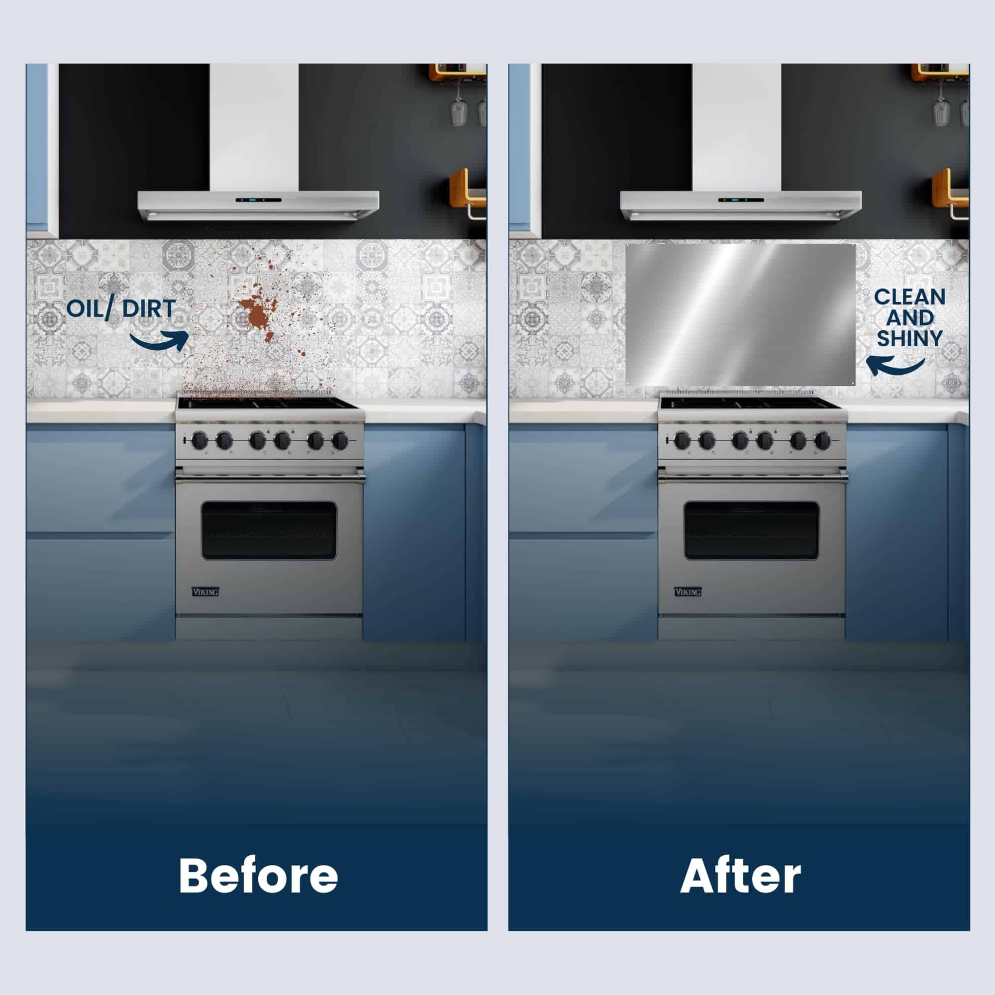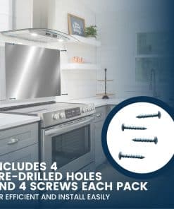 24″ x 30″ Panel de Metal Reversible para Salpicaduras con Tornillos de fijación, compatible con Broan-NuTone SP3004. Este panel de salpicaduras de cocina de metal de alta calidad es perfecto para proteger tu pared de salpicaduras de la estufa y facilitar la limpieza y el mantenimiento del área de cocción. Con un grosor de 0,019″ – 0,023″ es un panel de salpicaduras ultra plano y flush que se adapta perfectamente a una cocina de 30″ y campana de cocina del mismo ancho. Además, es reversible, lo que significa que puedes darle la vuelta si la superficie se raya o mancha, brindándote dos paneles de salpicaduras por el precio de uno. La instalación es sencilla, ya que viene con 4 agujeros pre-perforados en cada esquina para una fácil fijación sin necesidad de perforar.