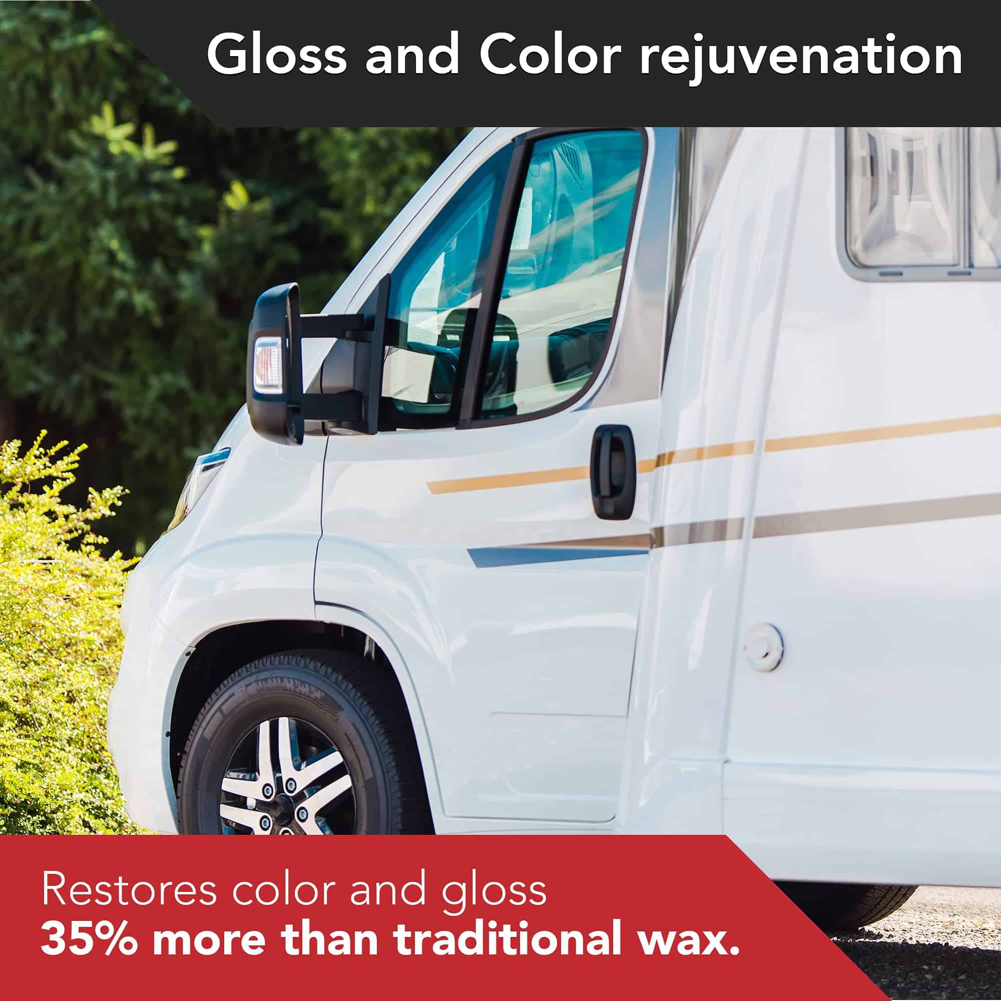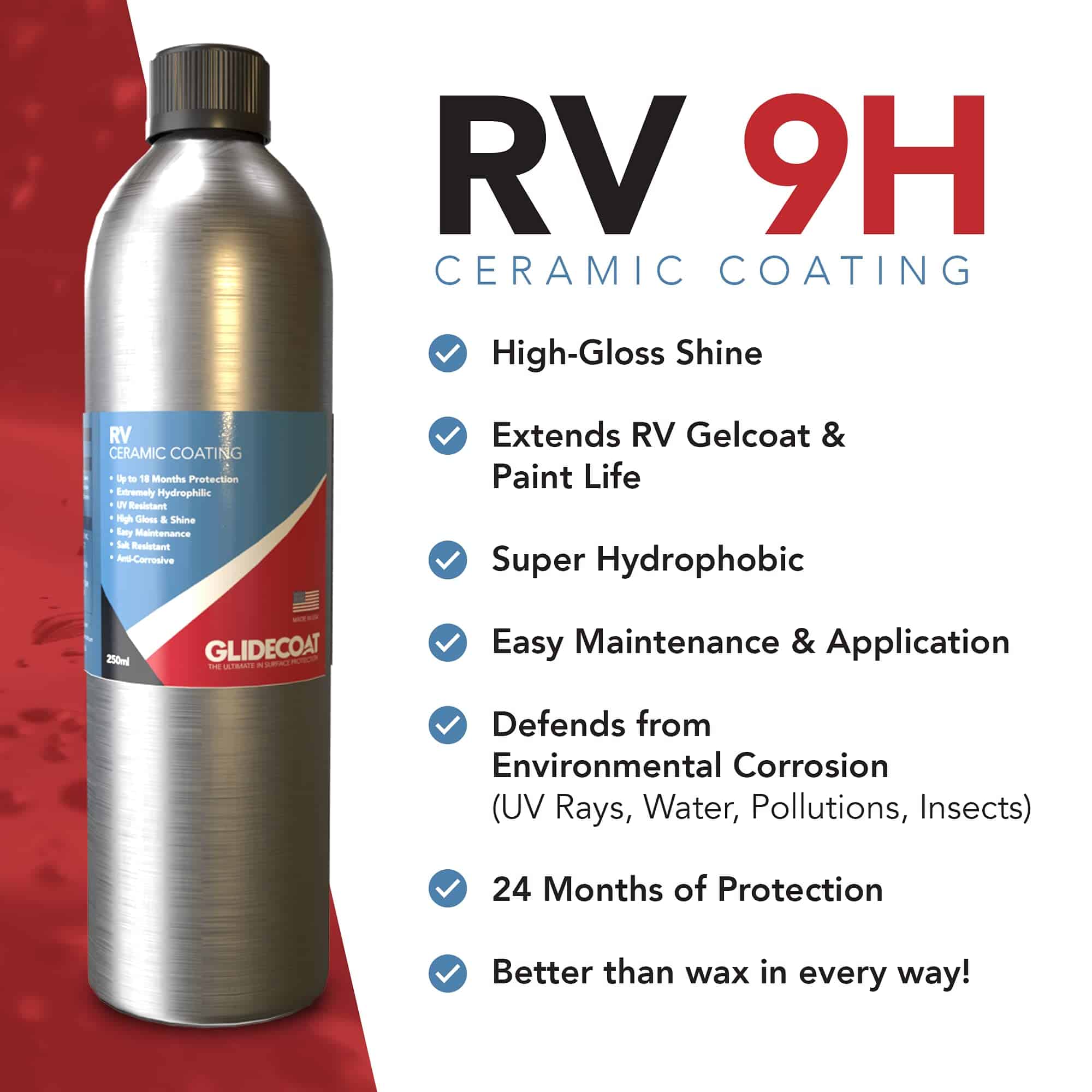 La Protección Definitiva de la Superficie En Comparación con otros vehículos, los RVs tienen gelcoat, que es mucho más poroso que el aluminio o acero pintado. A través de la exposición a diferentes elementos especialmente los rayos UV, el gelcoat se vuelve más poroso, lo que eventualmente conduce a manchas, limpieza difícil y una apariencia nublada, tiza, amarillenta causada por la oxidación. Simplemente prepara la superficie de tu RV eliminando cualquier oxidación o imperfecciones superficiales con compuestos y pulimentos Glidecoat. Luego, termina con el revestimiento cerámico Glidecoat para restaurar el gelcoat de tu RV a un acabado mejor que nuevo. Nuestro restaurador de acabado para RV llena los poros del gelcoat de tu RV y se adhiere directamente a la superficie para proporcionar protección que supera a los productos tradicionales de cera. Revestimiento Cerámico Glidecoat vs. Cera La cera pierde su funcionalidad superficial en cuestión de semanas. La mayoría de los fabricantes recomiendan encerar de 3 a 5 veces al año en condiciones promedio. Si vives en un área con una temperatura más alta o si tienes un RV de color más oscuro, la cera se deshace aún más rápido. La mayoría de los propietarios de RV no están encerando a menudo. Esto deja tu RV expuesto a diferentes elementos, deteriorando lentamente la superficie. El Revestimiento Cerámico Glidecoat para RV proporciona un nivel superior de protección para el gelcoat de RV y la pintura. Se adhiere a la superficie, creando una capa de protección que no se lava ni derrite incluso bajo altas temperaturas. Para asegurar resultados óptimos, recomendamos un mínimo de 2 capas. Consulta la guía a continuación para obtener más información sobre la cantidad de revestimiento necesaria según el tamaño y la superficie de tu RV. Cobertura – 2 Capas Cantidad de Revestimiento Tamaño del RV/Remolque para Campistas Superficie 50 ml 10 pies 60 pies cuadrados 120 ml 16 pies 144 pies cuadrados 160 ml 20 pies 192 pies cuadrados 250 ml 30 pies 300 pies cuadrados 500 ml 40 pies 600 pies cuadrados 1 L Varía 1,200 pies cuadrados.