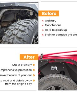 Revestimientos de guardabarros interiores delanteros hechos a la medida perfectamente para Jeep Wrangler JK JKU 2 y 4 puertas 2007-2018. Diseño de modelado de datos de vehículos originales de alta precisión, ajuste exactamente los bordes.
