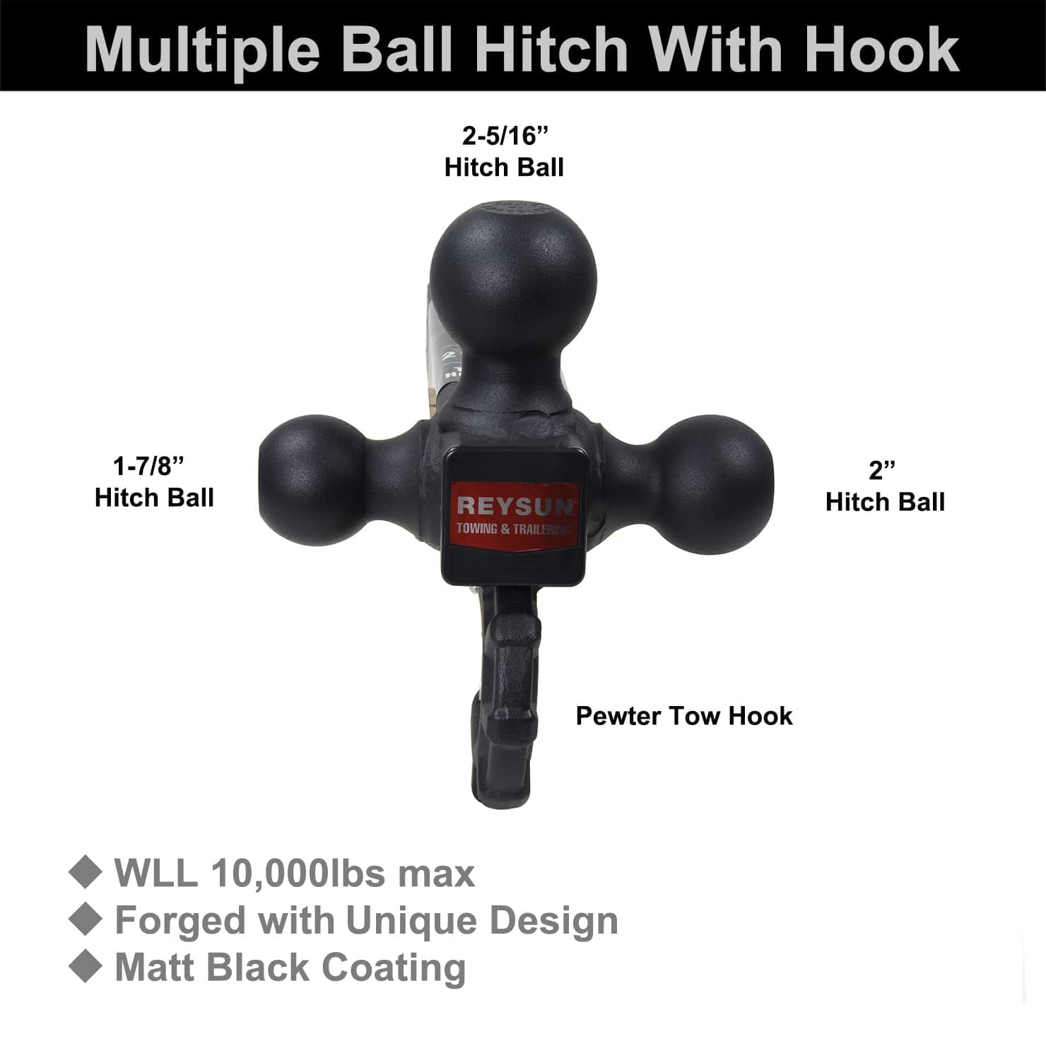 REYSUN Trailer Hitch 864011L Tri Ball Mount with Hook,