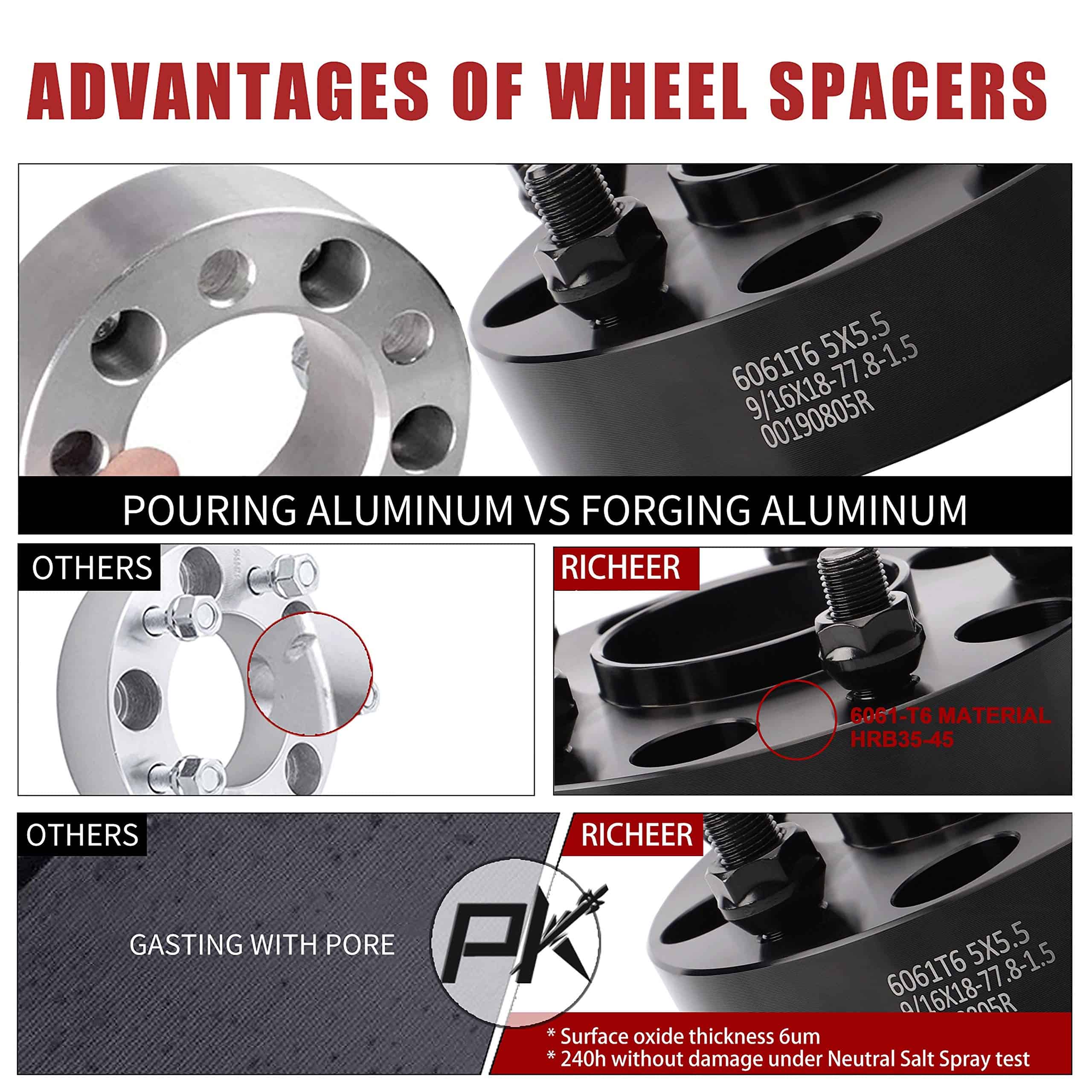 Richeer Separadores de Rueda 5×5.5 para 2002-2011 Ram 1500