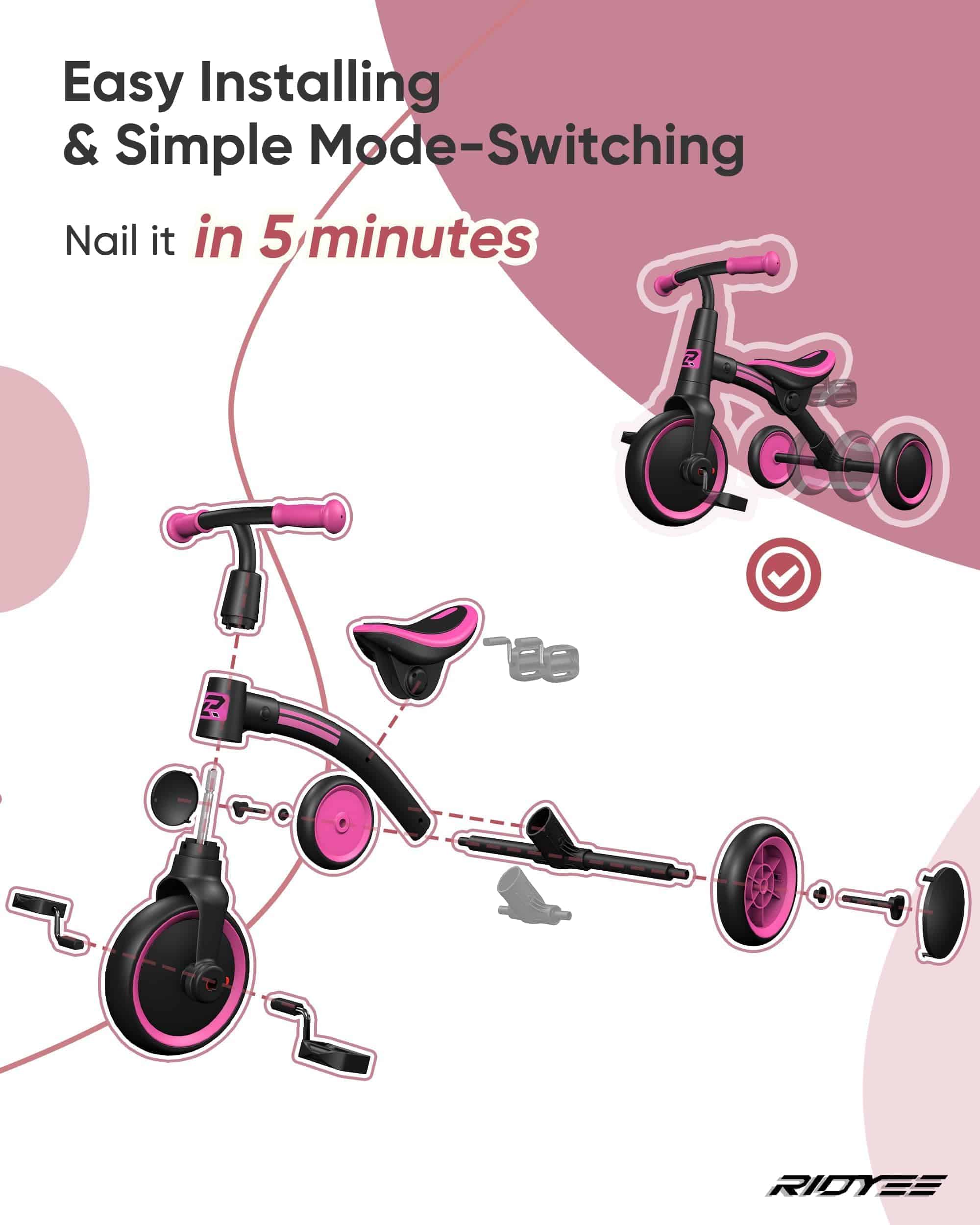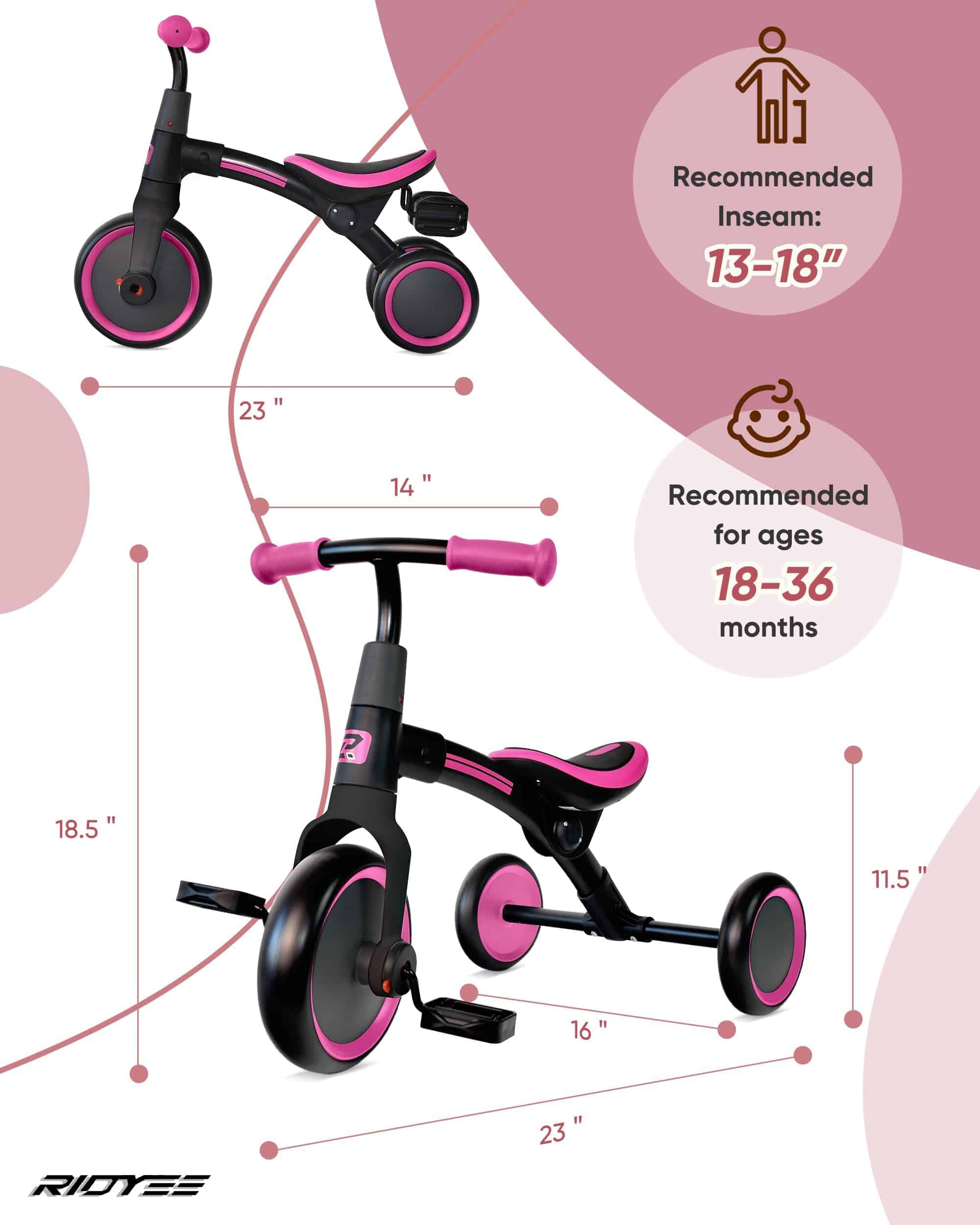 RIDYEE Bicicleta de Equilibrio 2-en-1 para Niños y Triciclo