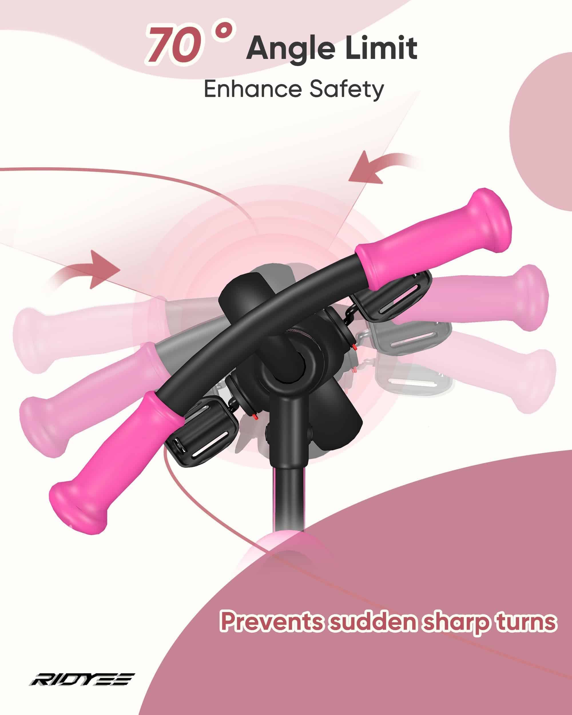 4. Seguridad mejorada con manillares de ángulo limitado: Los manillares de juguetes para montar a caballo para niños tienen un límite de ángulo de 25 grados en cada lado para evitar vuelcos durante giros bruscos, mejorando la seguridad de los niños. Este diseño permite a los niños navegar con confianza sin perder el equilibrio a velocidades más altas.