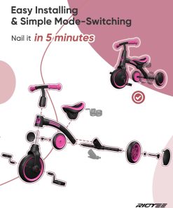 2. Montaje rápido y fácil para más tiempo de juego: La bicicleta de equilibrio para niños de 2 años no requiere herramientas ni tornillos para el montaje, la configuración es rápida y sin problemas. Los padres pueden tener la bicicleta lista en minutos, permitiendo más tiempo para la diversión. El diseño intuitivo facilita el cambio entre los modos de bicicleta de equilibrio y triciclo.