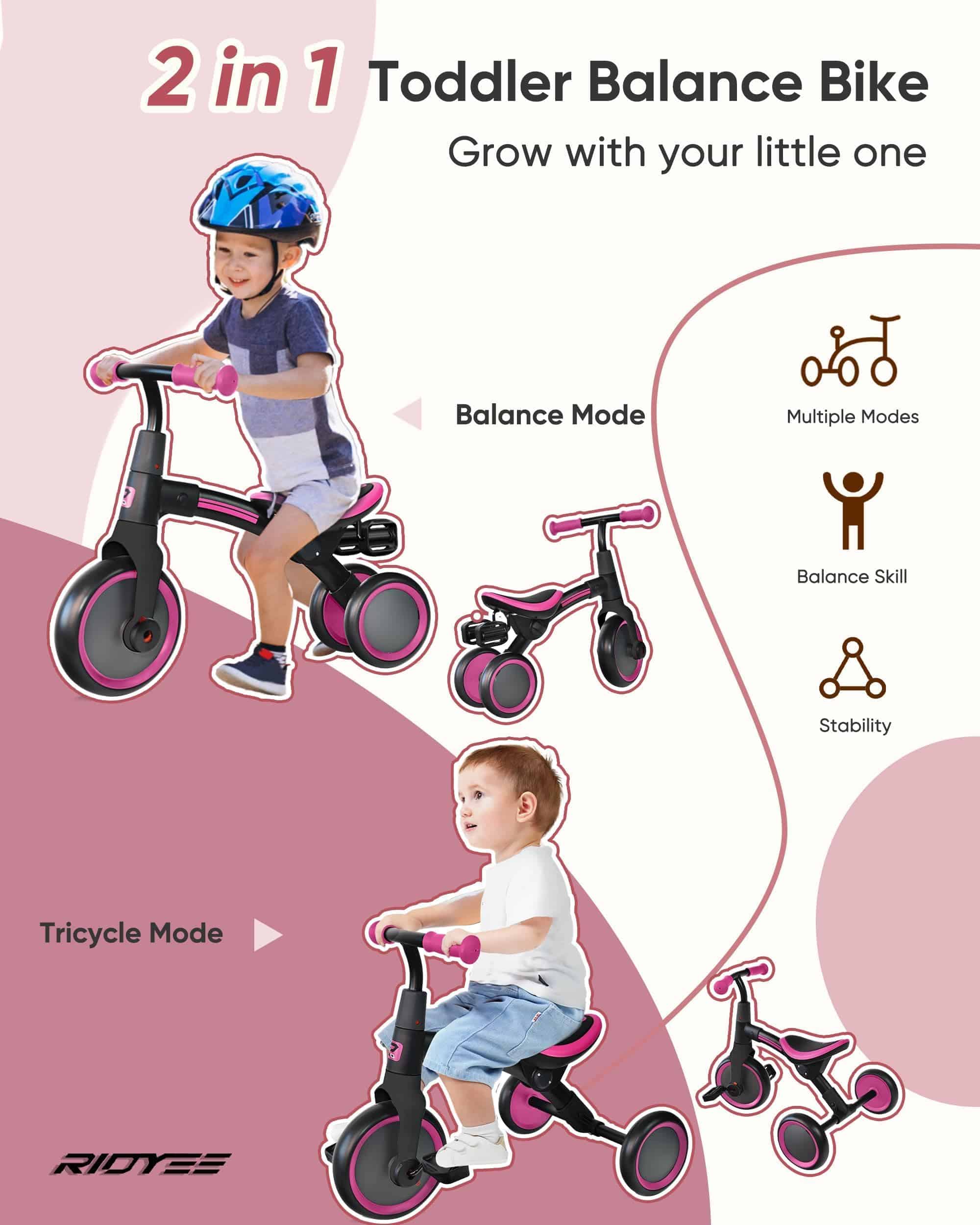 1. RIDYEE Bicicleta de Equilibrio 2-en-1 y Triciclo: ¡Perfecto para niños de 1.5 a 3 años! Este diseño versátil se convierte fácilmente de una bicicleta de equilibrio a un triciclo, ayudando a los niños a desarrollar equilibrio, coordinación y confianza a medida que crecen. ¡Es la opción perfecta para tus hijos!