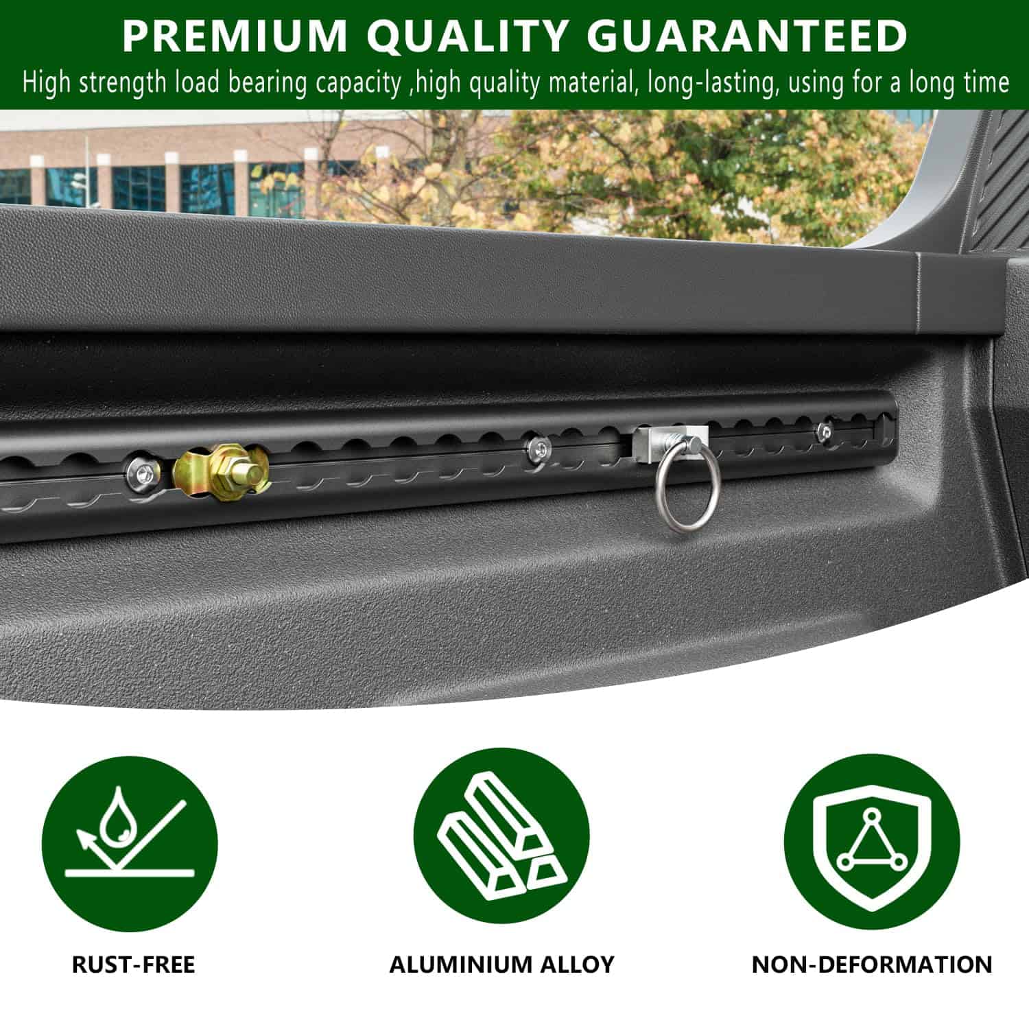 2. Material Premium: El riel lateral de la caja de la camioneta Ford Maverick 2022-2025 está hecho de aleación de aluminio resistente que es muy duro, no deformable y resistente a los arañazos. También es resistente a la abrasión y al óxido, y durará en todas las condiciones climáticas.