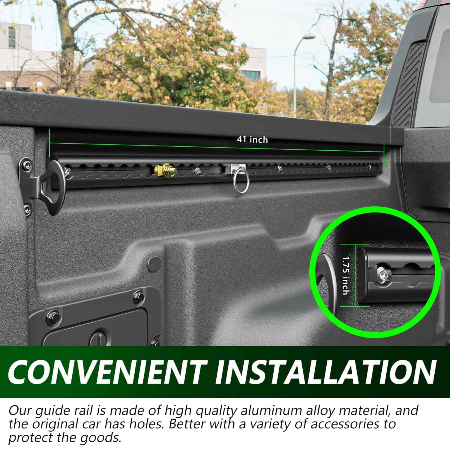 4. Instalación sencilla: Nuestro sistema de amarre compatible con el riel de la caja de la camioneta Ford Maverick 2022-2025 se puede montar en los rieles de su camioneta muy fácilmente. En el paquete del producto, hay instrucciones y herramientas de instalación. Puede escanear el código QR en el manual para ver un video de instalación detallado. También hay un video de referencia en nuestra página de exhibición del producto.
