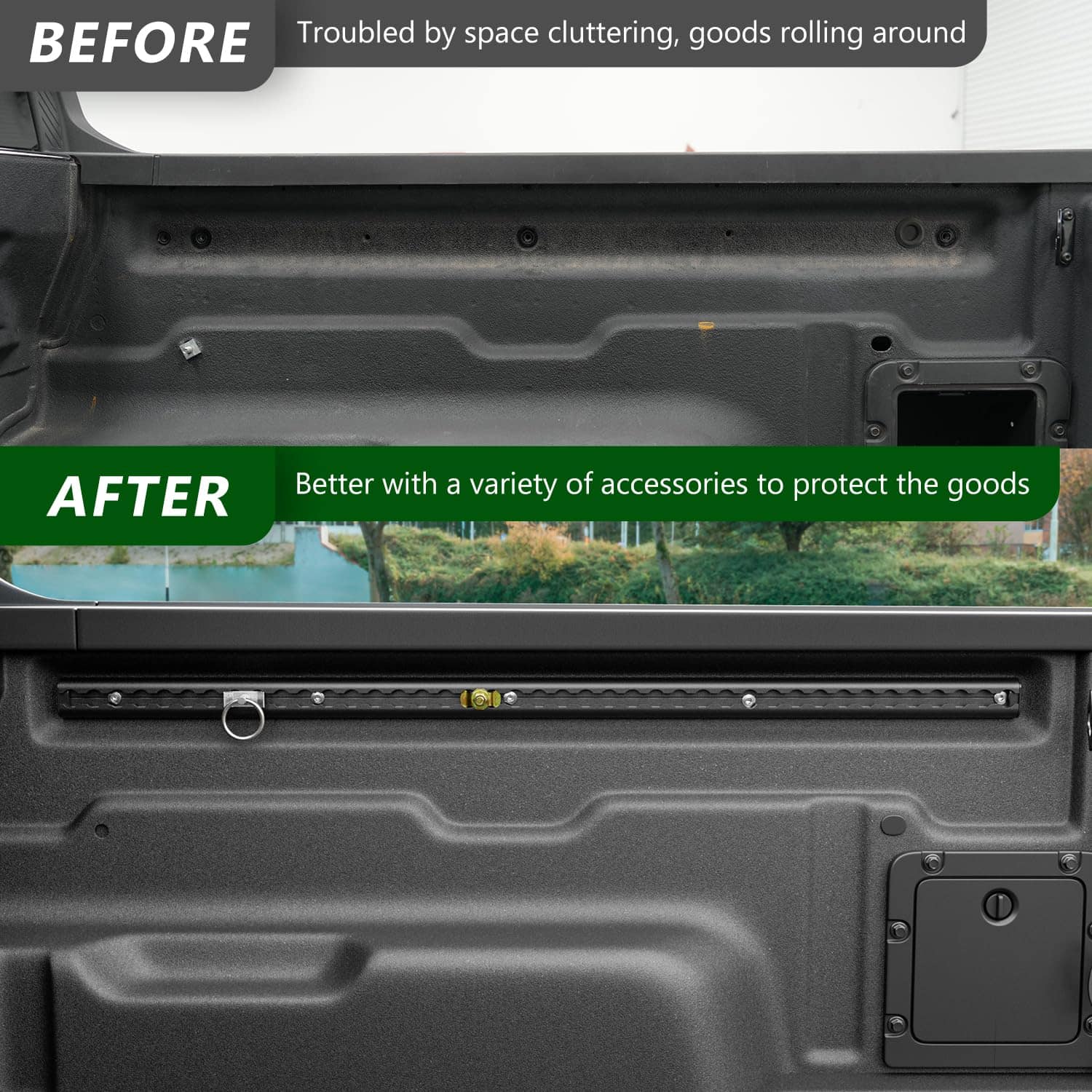 3. Función eficiente: El riel lateral de reemplazo para la caja de la camioneta Ford Maverick tiene articulaciones ajustables y anillas de riel removibles para una fácil organización del espacio de la caja de la camioneta. Los paneles también se pueden ajustar a lo largo de los rieles mismos para una mejor fijación. Son ideales para soportar y asegurar paneles para crear su propio sistema de rieles personalizado.
