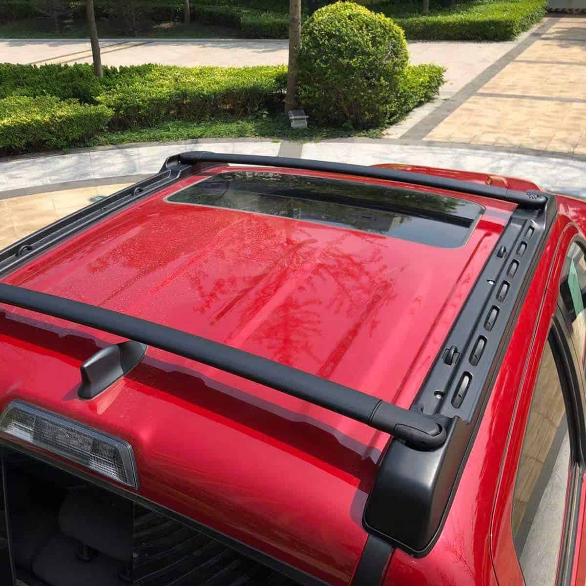 Rieles de parrilla de techo de repuesto Autoxrun para Toyota Tacoma Double Cab 2007-2022 Barras transversales de aluminio Superiores Equipaje Carga Compatibilidad: para Toyota Tacoma Double Cab 2007-2021 Características: Perfil bajo y ajuste cercano al techo y menos resistencia al viento. Aumenta la capacidad de almacenamiento de tu vehículo transformando tu techo en un segundo maletero. Construcción de aleación de aluminio de aviación de alta resistencia y tapas finales con capacidad de carga de hasta 150 libras. Aumenta en gran medida el espacio de almacenamiento general del vehículo y te ayuda a llevar equipaje extra, equipo de camping, bicicletas, kayaks, portaesquís, tablas de surf y mucho más. Fácil de instalar con instrucciones y todo el hardware incluido, no se requiere perforación/corte.