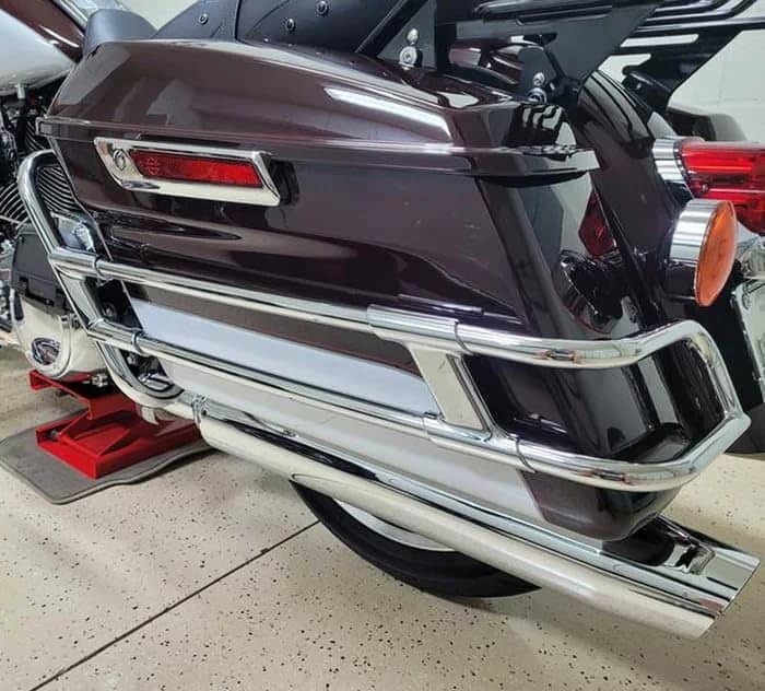 Los rieles de protección para alforjas de mantenimiento M son el complemento perfecto para tu motocicleta Harley Touring. Hechos de tubos cromados de pared gruesa y soportes de montaje elegantes, estos rieles rodean y protegen la parte inferior de la bolsa, brindándole a tu motocicleta un aspecto tradicional y elegante. Con un estilo de montaje por perno, estos rieles se fijan de forma segura a los guardabarros originales del equipo, lo que garantiza un aspecto impecable en tu motocicleta. Además, los rieles se pueden instalar con o sin iluminación trasera de accesorio Keystone, lo que te ofrece la flexibilidad de personalizar tu motocicleta según tus preferencias. Simplifica la instalación gracias a que los rieles están preensamblados, lo que te permite disfrutar rápidamente de la protección y el estilo que ofrecen a tu motocicleta Touring. Actualiza tu motocicleta hoy mismo con los rieles de protección para alforjas de mantenimiento M y disfruta de una mayor seguridad y un aspecto clásico en tu próxima aventura en carretera.