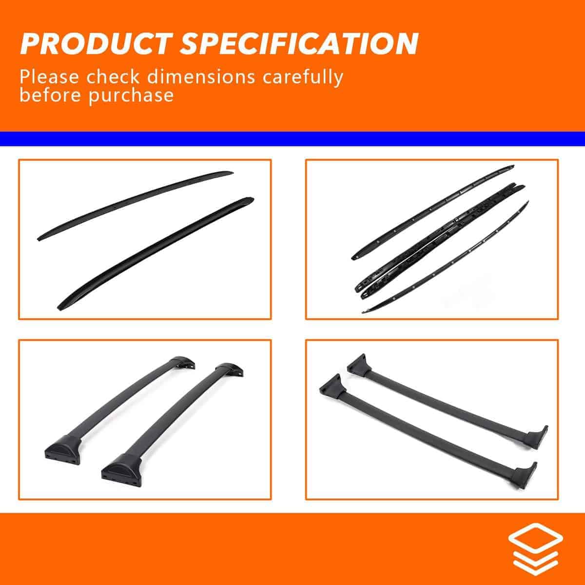 2. Material: Hecho de aleación de aluminio de alta calidad. Mayor resistencia y mejor durabilidad. Diseño de perfil bajo y aerodinámico que lo hace eficaz para reducir el ruido del viento al conducir a alta velocidad.